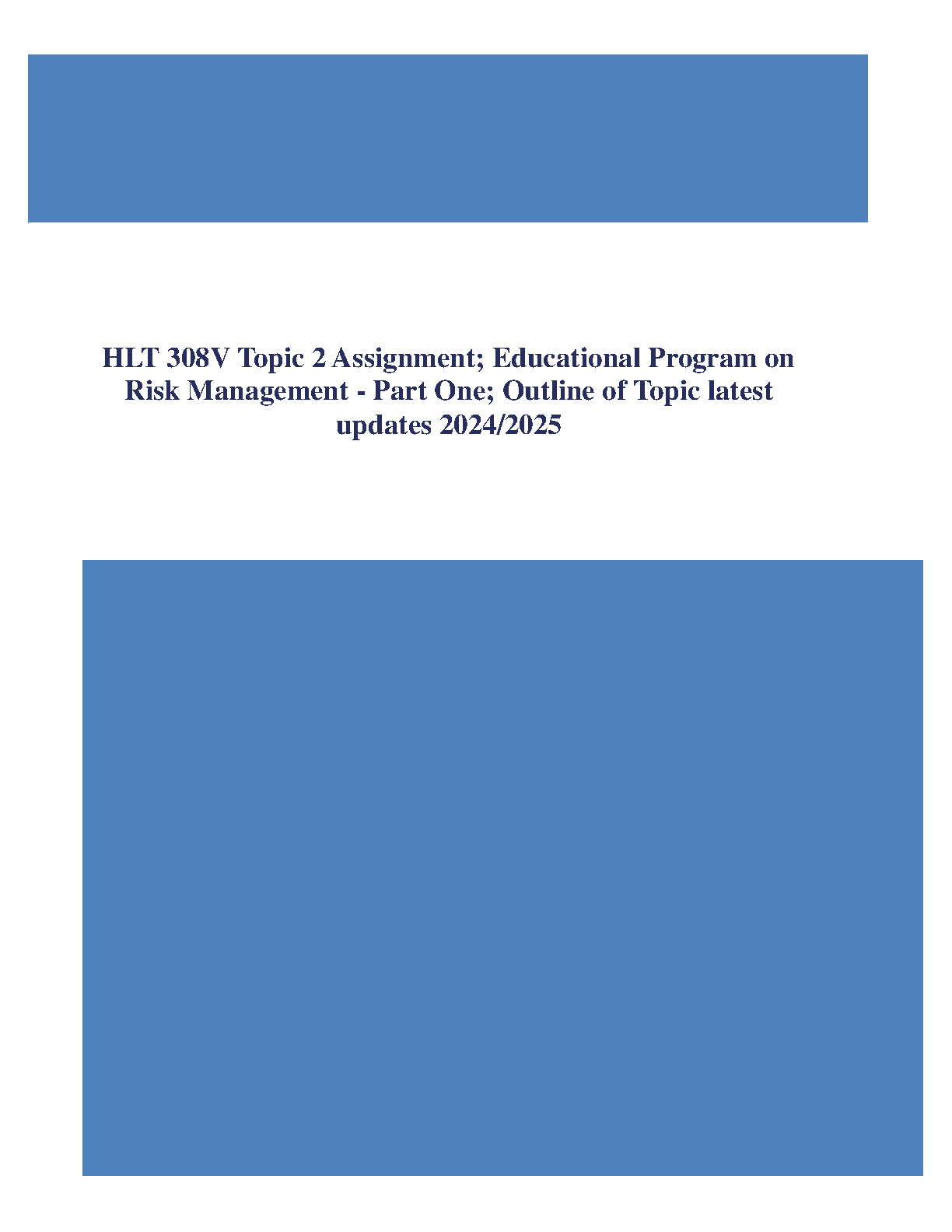 HLT 308V Topic 2 Assignment; Educational Program on Risk Management - Part One; Outline of Topic latest updates 2024/2025