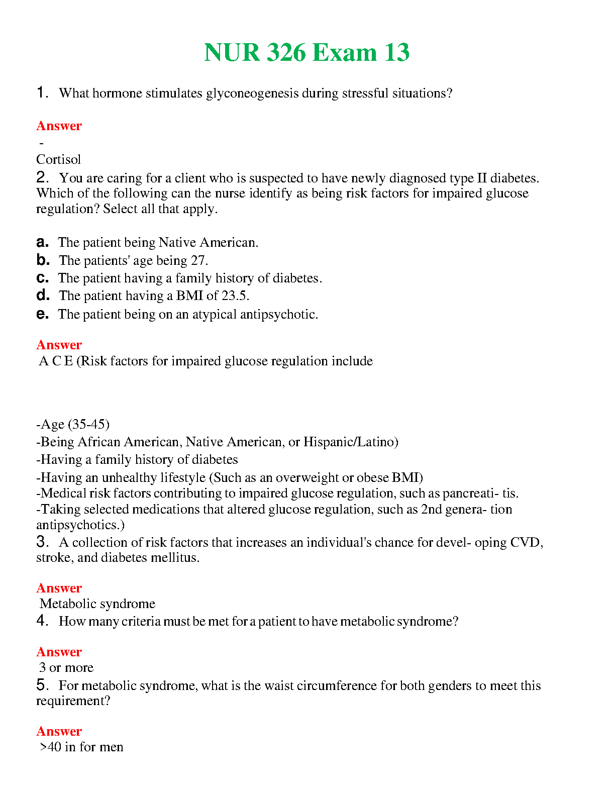 This comprehensive guide provides complete solutions and explanations for NUR 326 Exam 13, equipping nursing students with the knowledge and understanding needed to pass their exams on the first attempt.