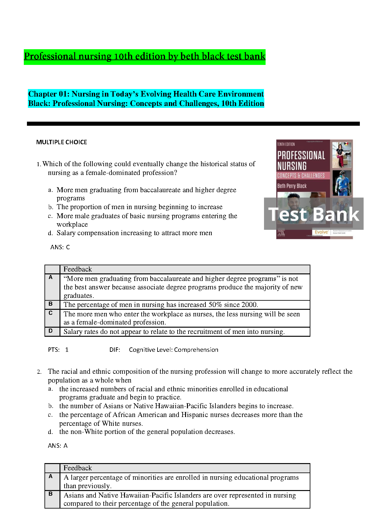 Professional Nursing: Concepts and Challenges, 10th Edition Test Bank by Beth Perry Black