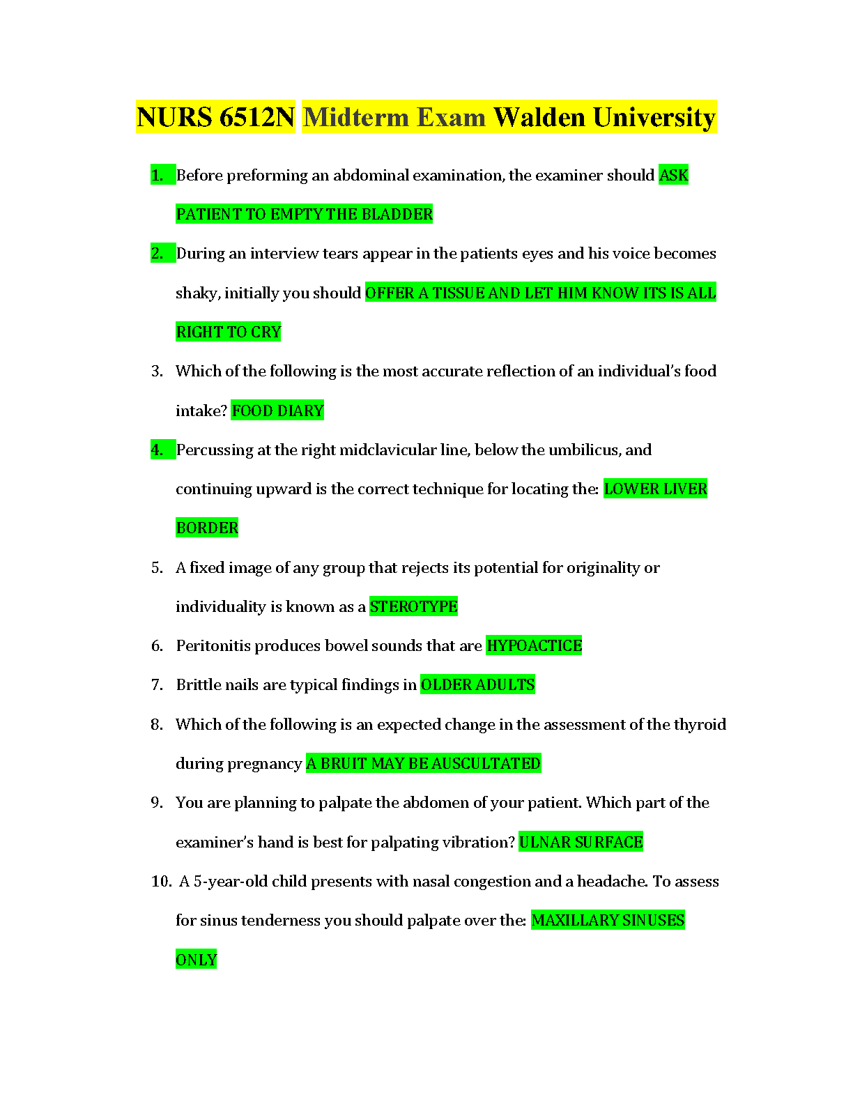 NURS 6512N Midterm Exam Walden University: Complete Study Guide for 2024-2025 Academic Year
