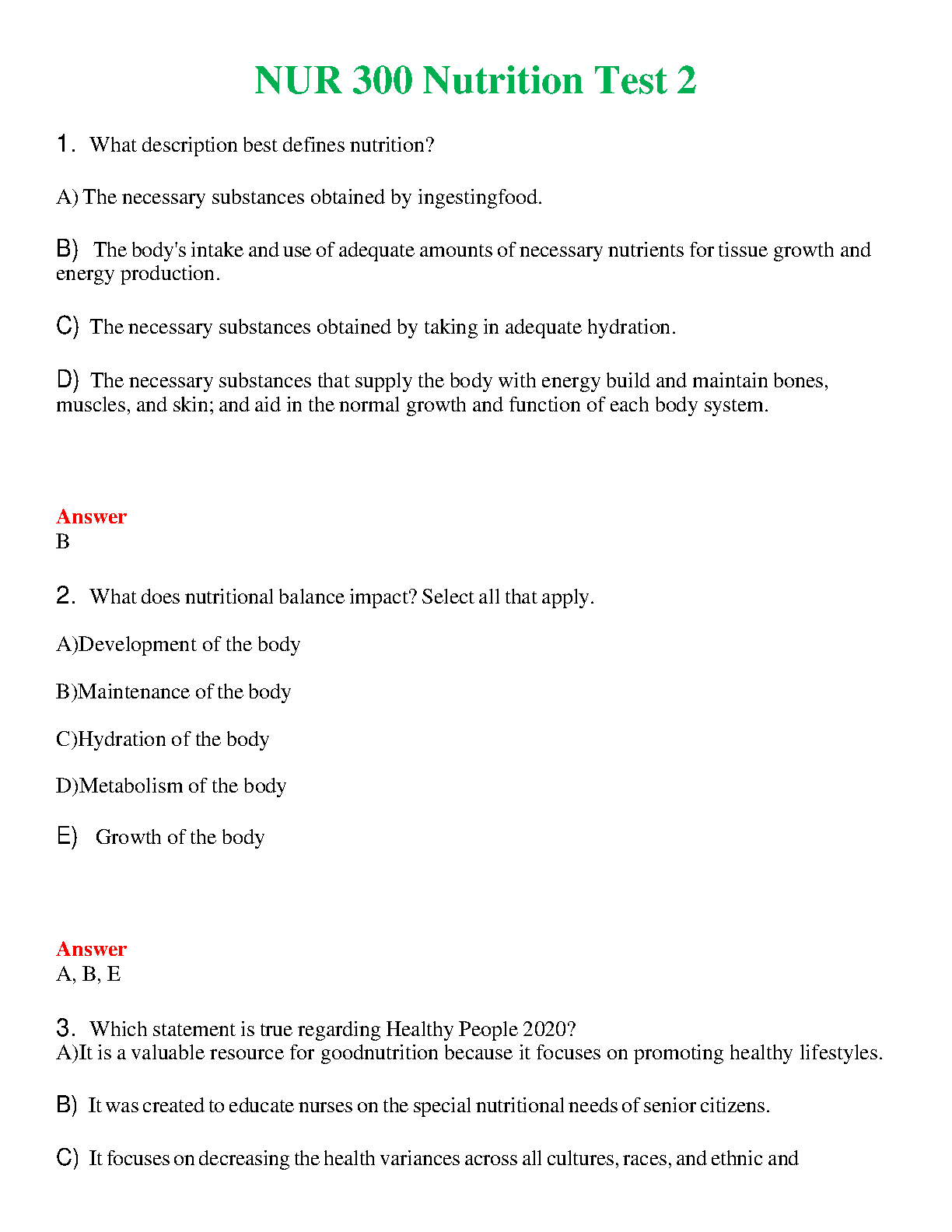 NUR 300 Nutrition Test 2: A 2024-2025 Guide for Exam Success