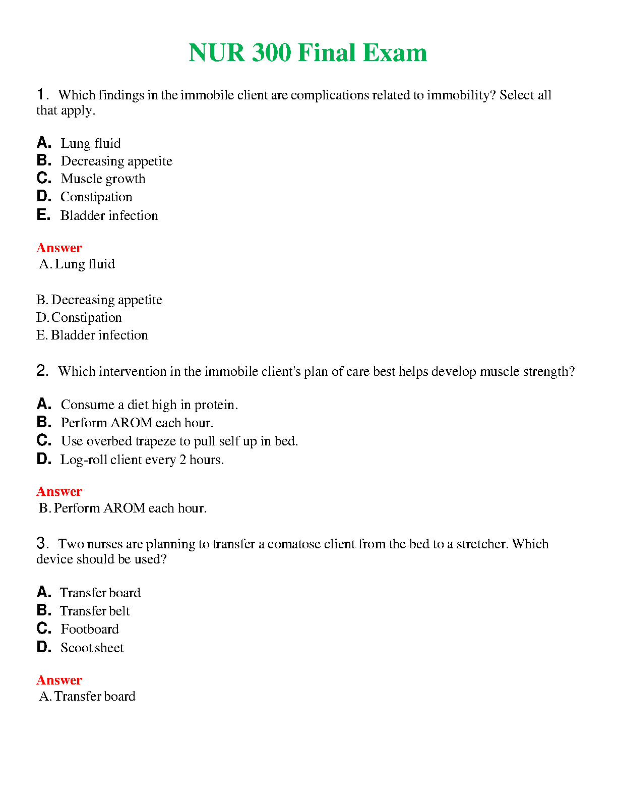 NUR 300 Final Exam: A Comprehensive Guide for Success in 2024-2025