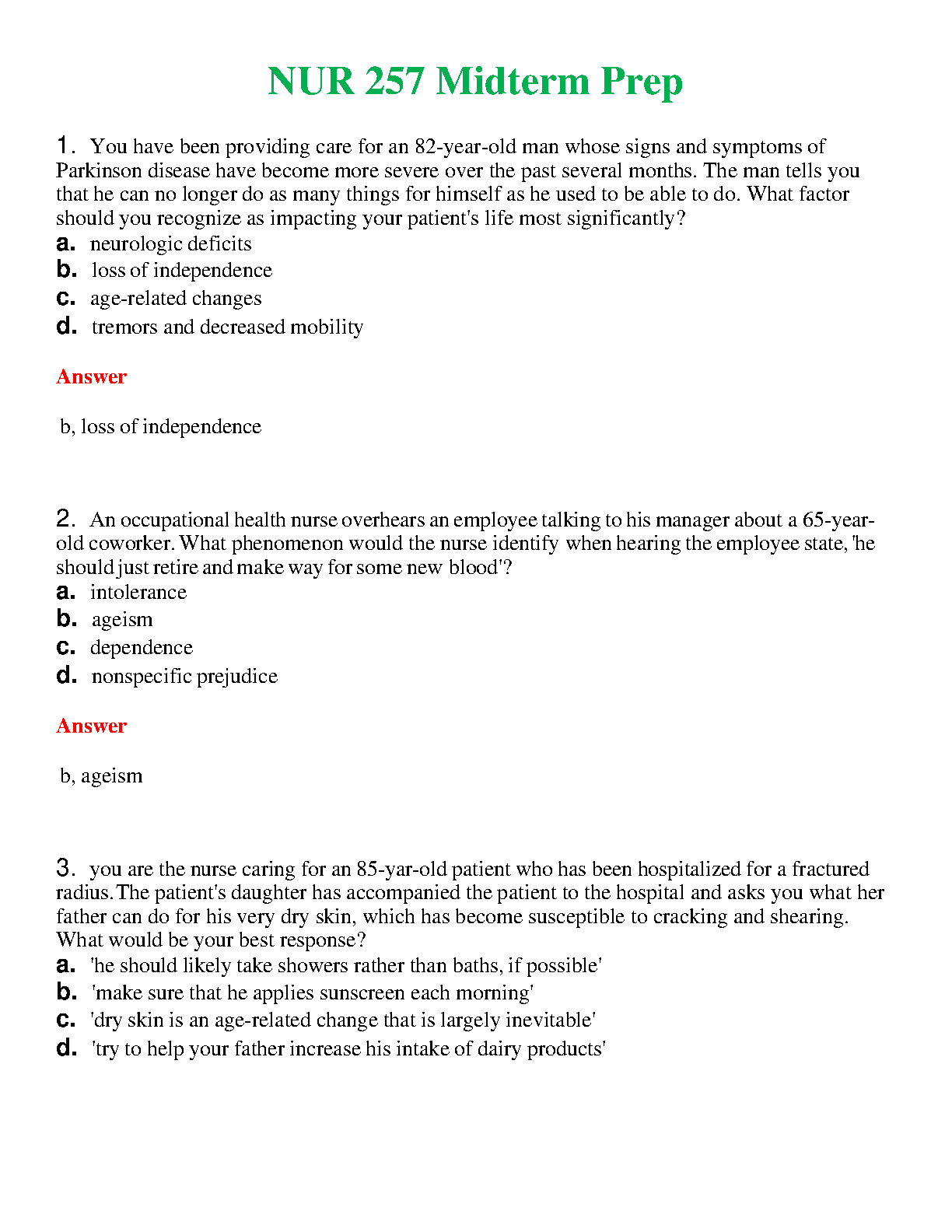 NUR 257 Midterm Prep: A 2024-2025 Guide for Exam Success