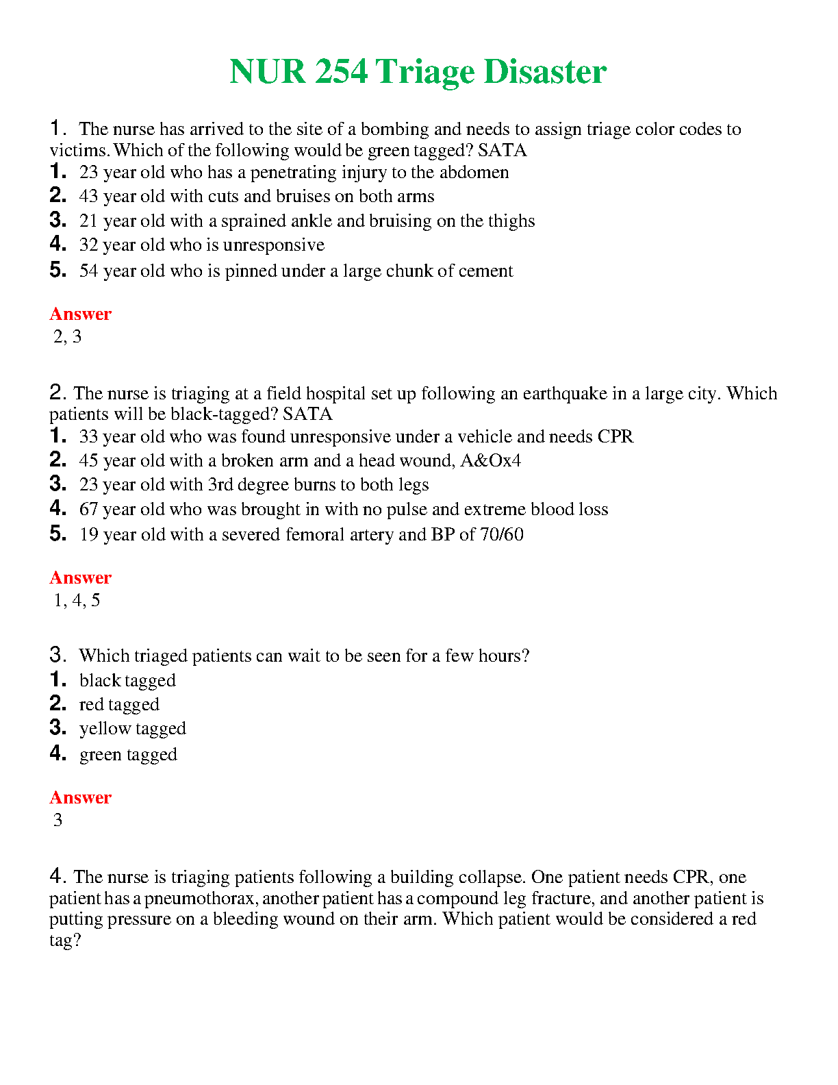 NUR 254 Triage Disaster: Exam Prep for Nursing Students (2024-2025 Edition)