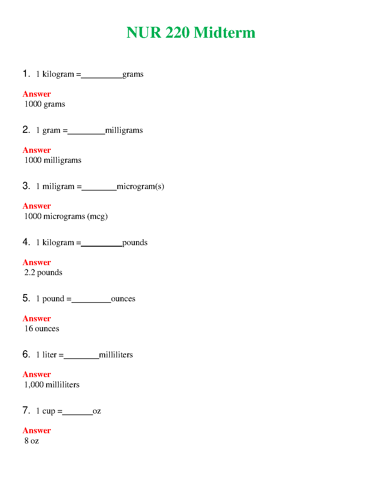 NUR 220 Midterm Exam Study Guide for 2024-2025 Academic Year