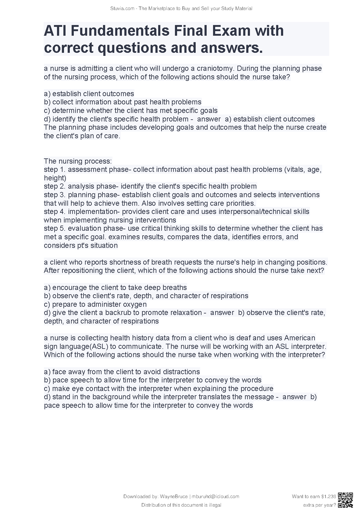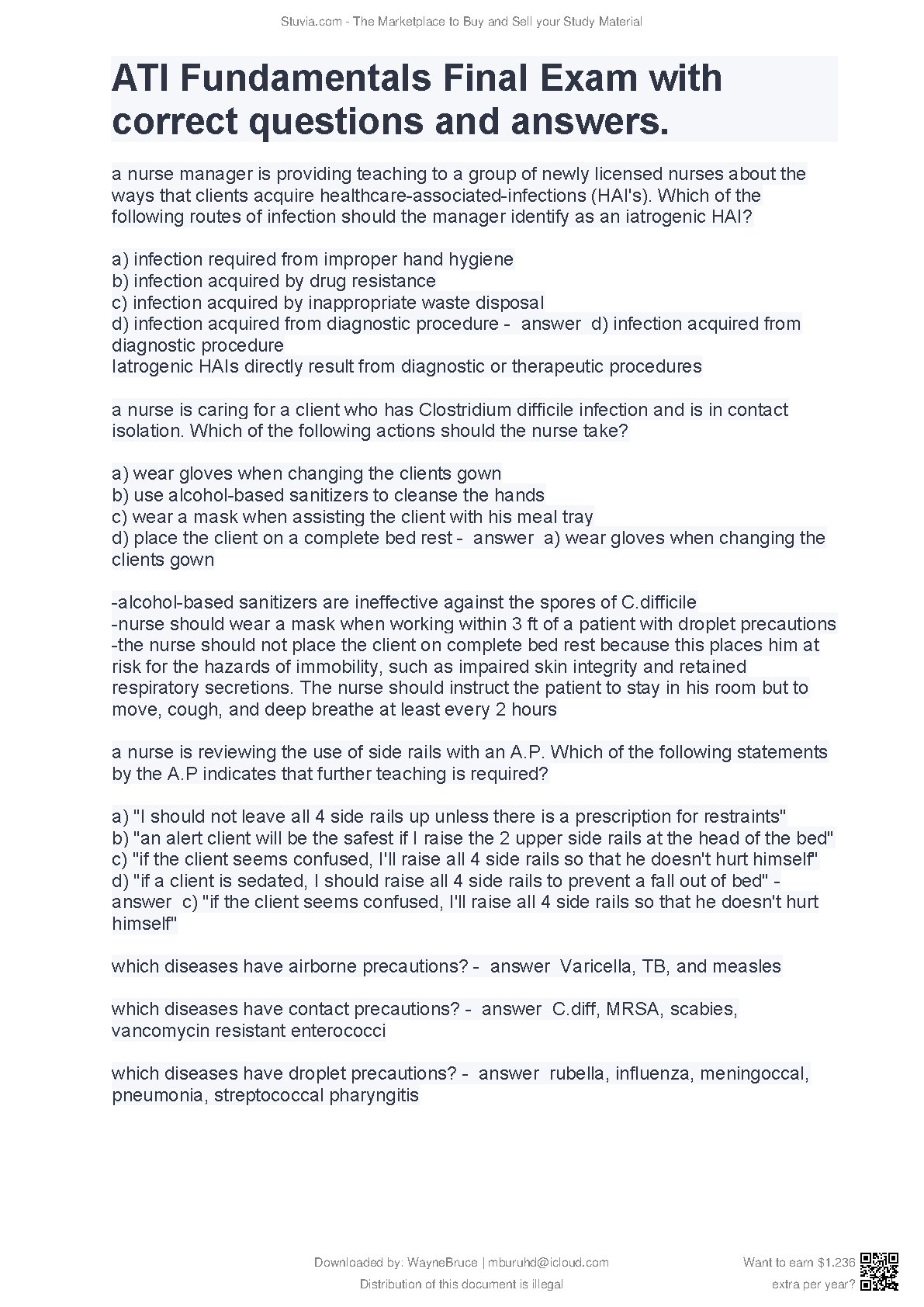 ATI Fundamentals Final Exam with Correct Questions and Answers by Unknown Author (2024/2025 Edition)