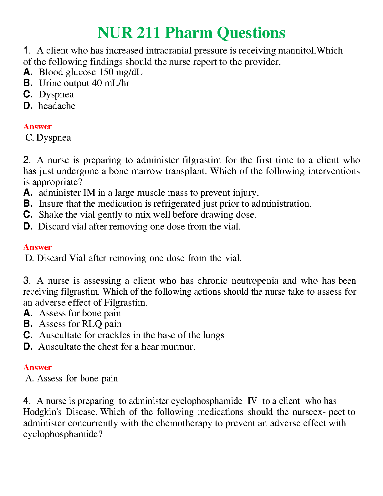 NUR 211 Pharmacology Exam Questions and Answers: A Guide for First-Time Passers (2024-2025 Edition)