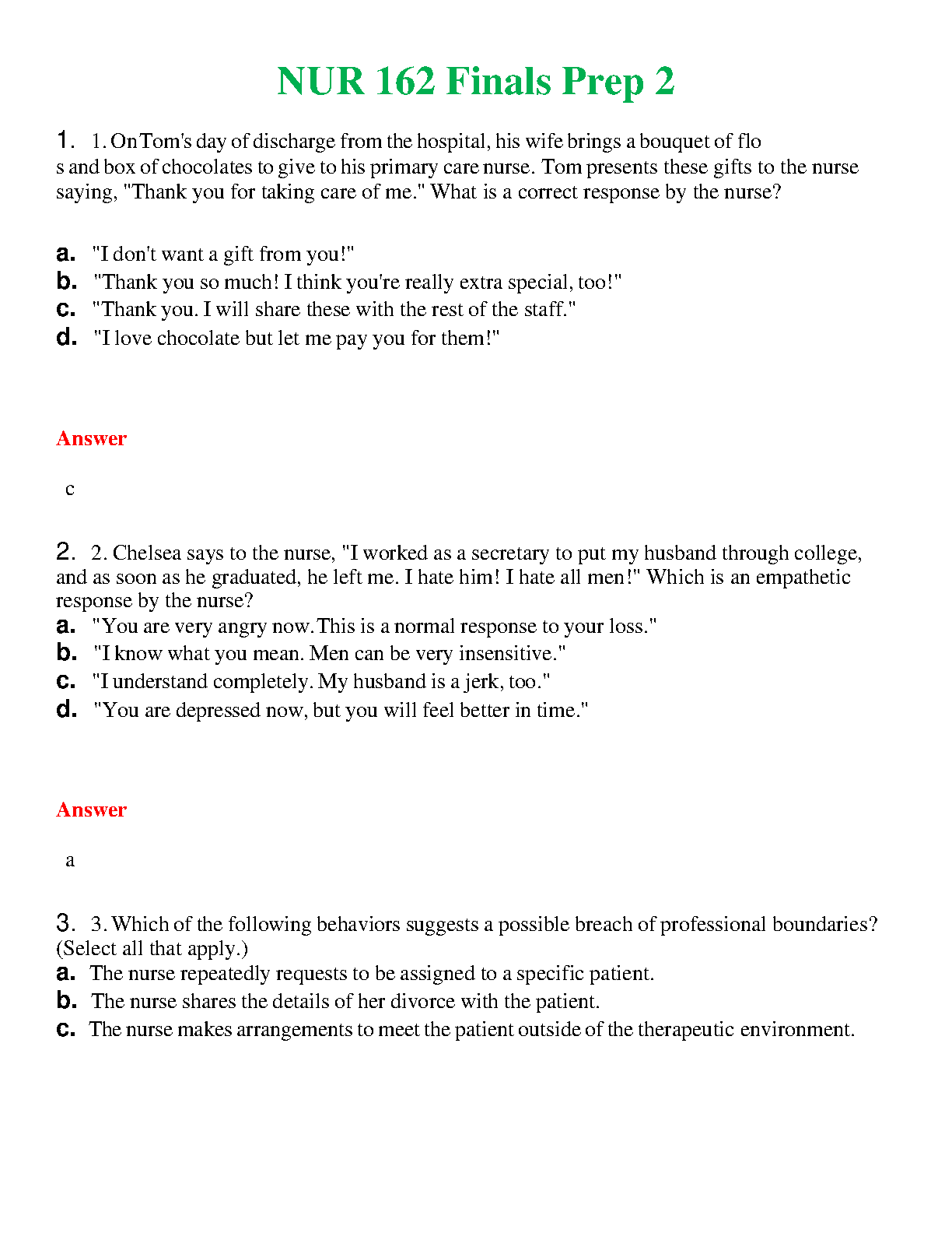 Conquer your NUR 162 final exam with this comprehensive prep guide. Designed for the 2024-2025 academic year, this resource helps nursing students master key concepts and achieve exam success. Avoid resits and boost your confidence with targeted practice questions and insightful explanations.