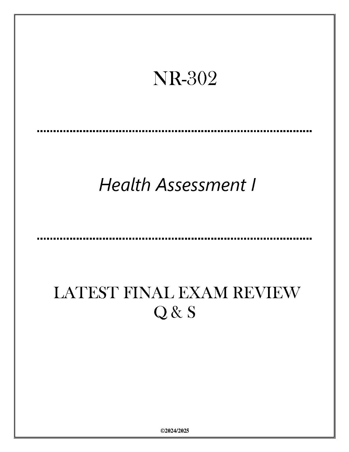 Ace your NR-302 Health Assessment I final exam with this comprehensive question and answer review guide. Designed for the 2024-2025 academic year, this resource helps students master key concepts and achieve exam success on their first attempt, eliminating the need for resits.
