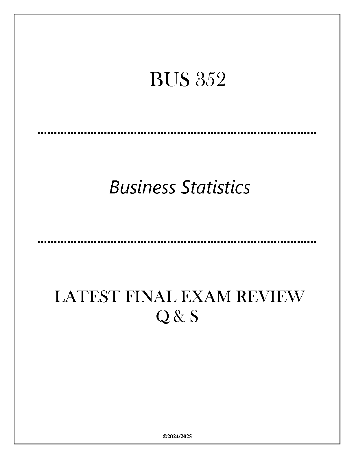 BUS 352 Business Statistics: Latest 2024/2025 Final Exam Review Questions and Answers