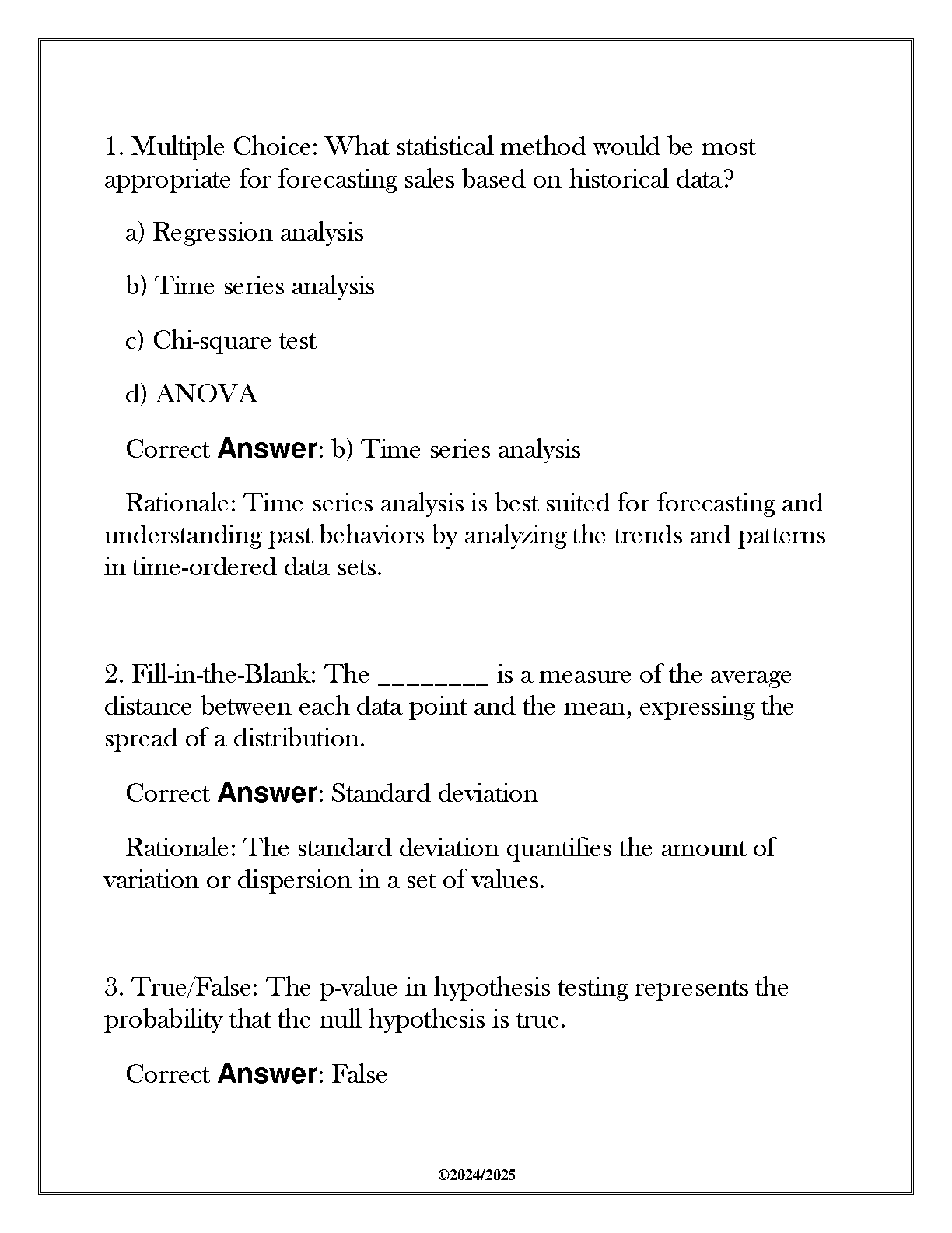 Ace your BUS 352 Business Statistics final exam with this comprehensive 2024/2025 review guide. This resource is designed to help students achieve exam success on their first attempt, eliminating the need for resits. Practice questions and answers cover all key concepts.
