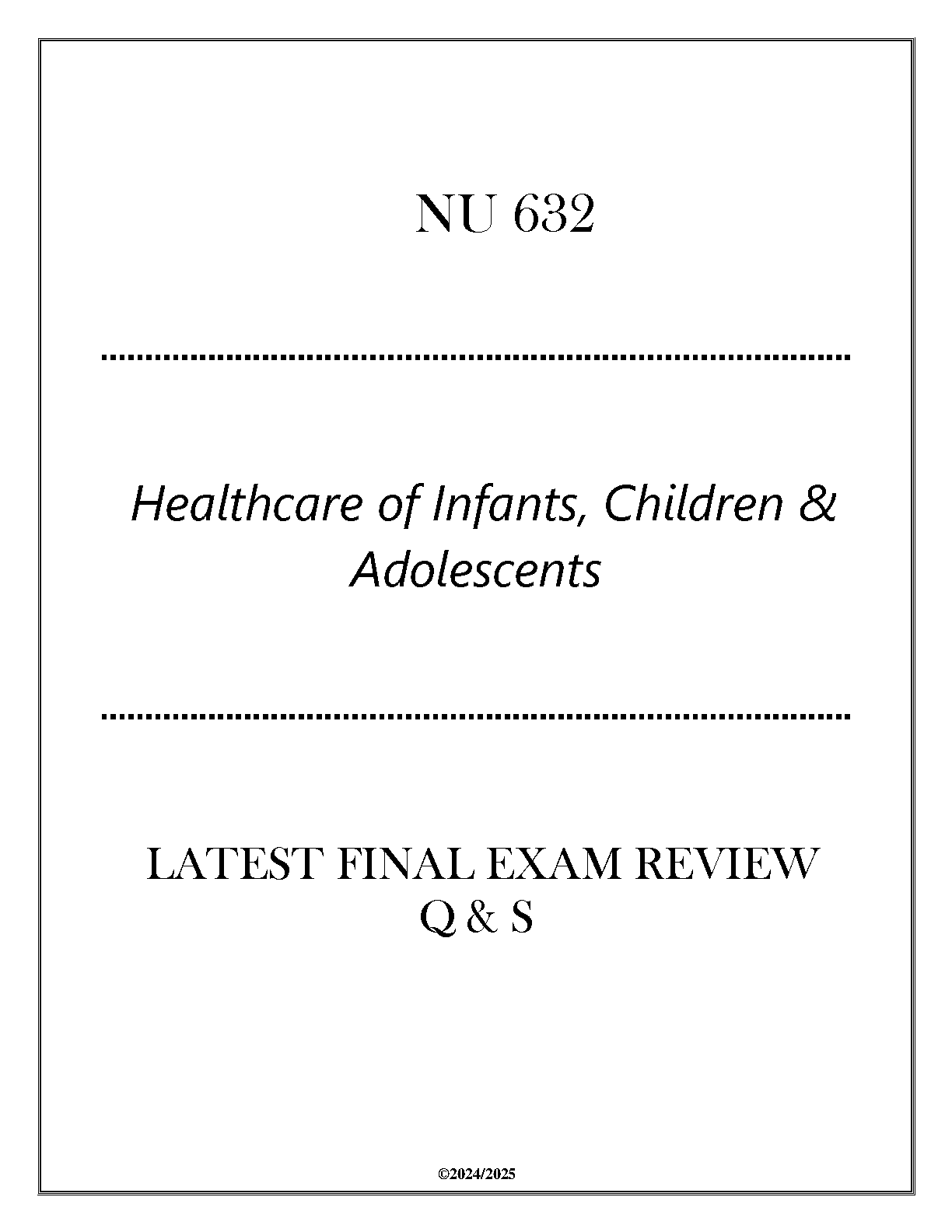NU 632 Healthcare of Infants, Children & Adolescents: Latest 2024-2025 Final Exam Review Q&A