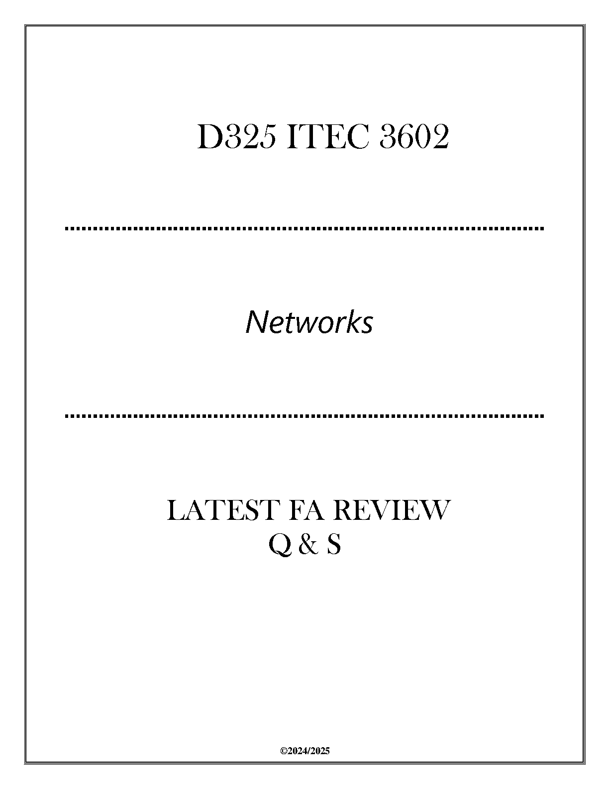 ITEC 3602 Networks: Latest 2024/2025 Exam Review Q&A for D325 Students