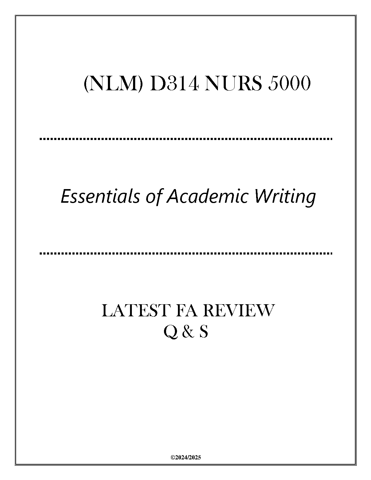 Essentials of Academic Writing: NLM D314 NURS 5000 - 2024/2025 Edition - Ace Your Exams on the First Attempt
