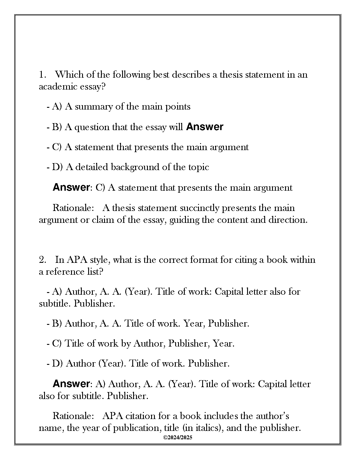 Conquer your Essentials of Academic Writing exams with this comprehensive 2024/2025 study guide. Designed to help students avoid resits and achieve first-time success. This resource is packed with essential information, practice questions, and answers to ensure you're fully prepared.