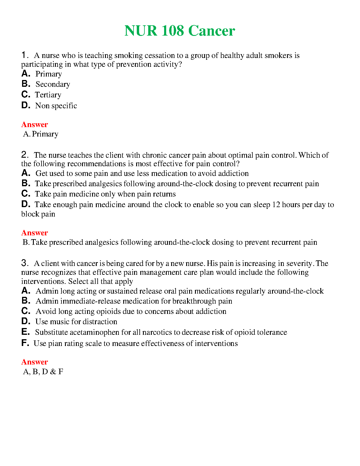 NUR 108 Cancer Exam Prep: Ace Your Exams with 2024-2025 Edition Questions & Answers