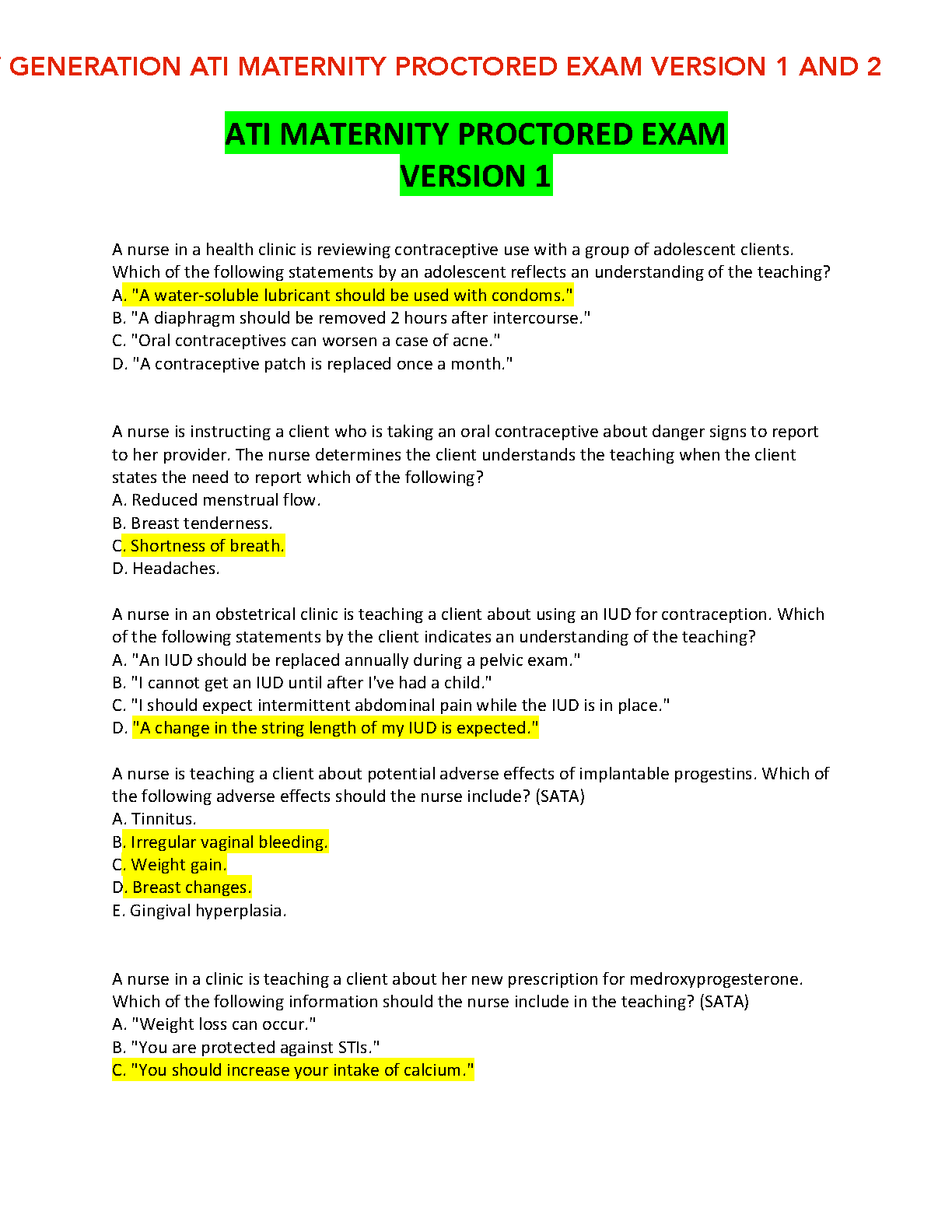 Ace your ATI Maternity Proctored Exam on the first try with this in-depth study guide covering versions 1 and 2. Master key concepts and practice with real exam-like questions to boost your confidence and avoid resits. Perfect for 2024/2025 nursing students.