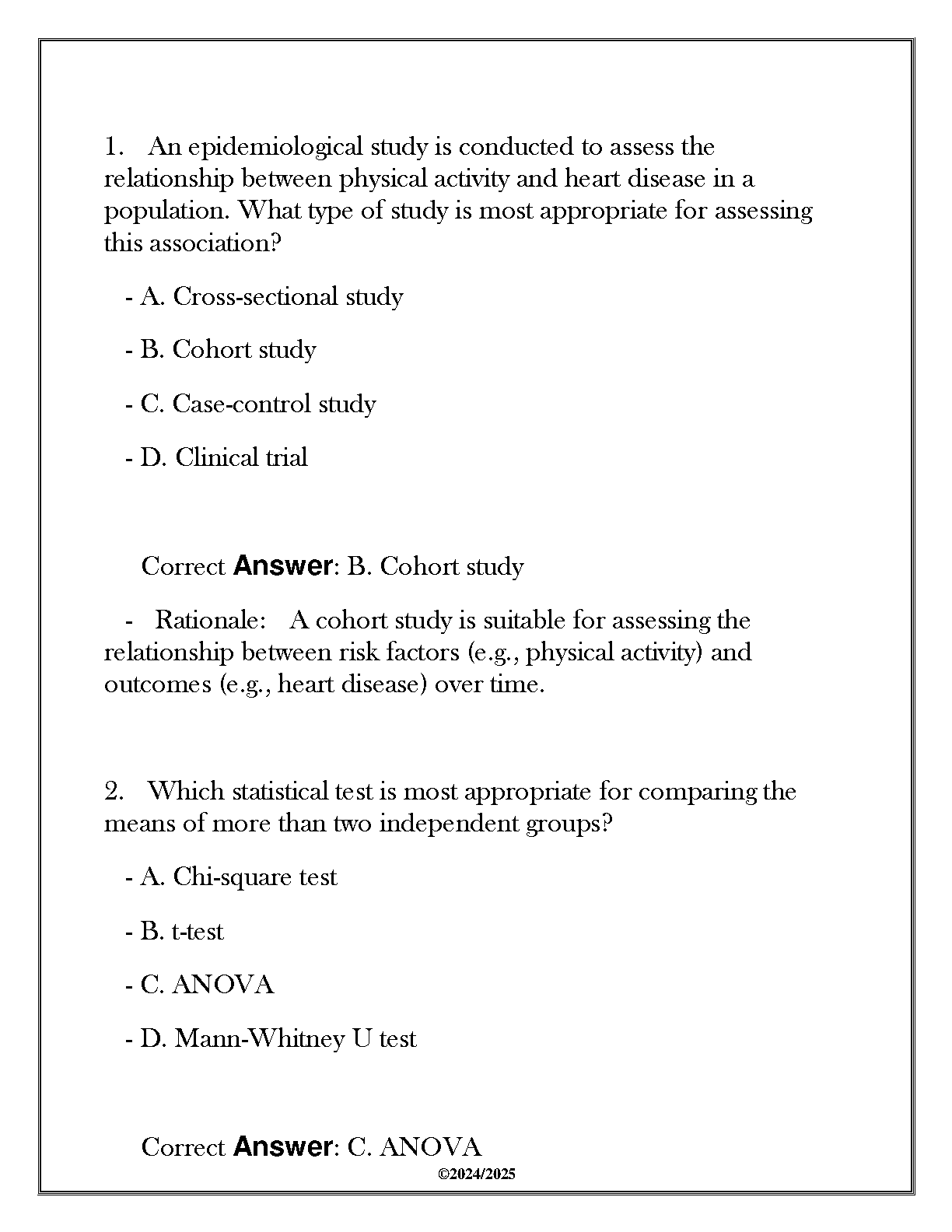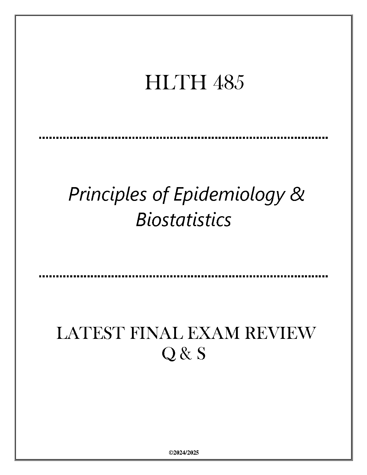 Ace your HLTH 485 Principles of Epidemiology & Biostatistics final exam with this comprehensive 2024-2025 review guide. This resource provides questions and answers to help you pass on your first attempt and avoid resits.