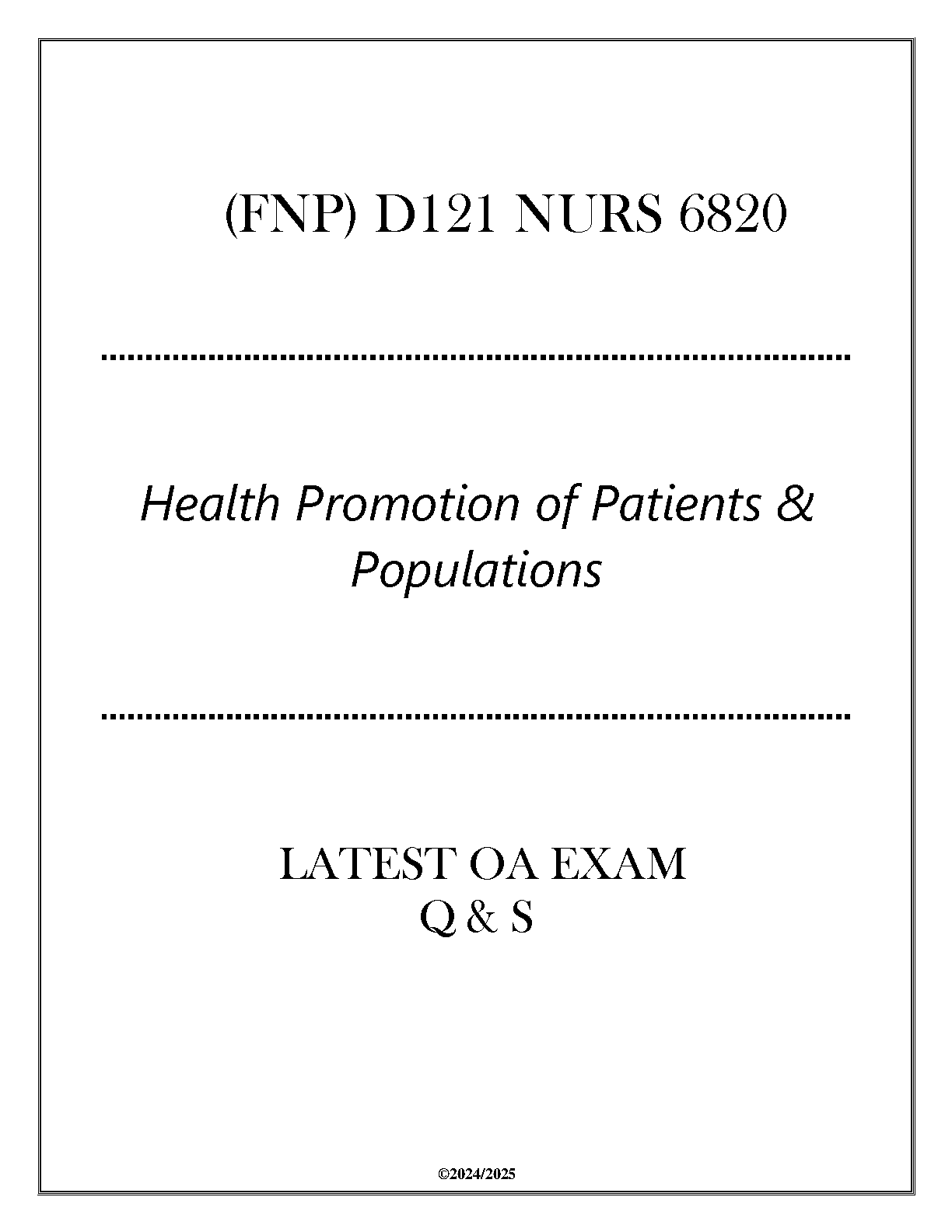 Ace your NURS 6820 Health Promotion of Patients & Populations exam with this comprehensive question and answer guide. Designed for the 2024-2025 academic year, this resource covers all key concepts to help you pass on your first attempt, avoiding resits.