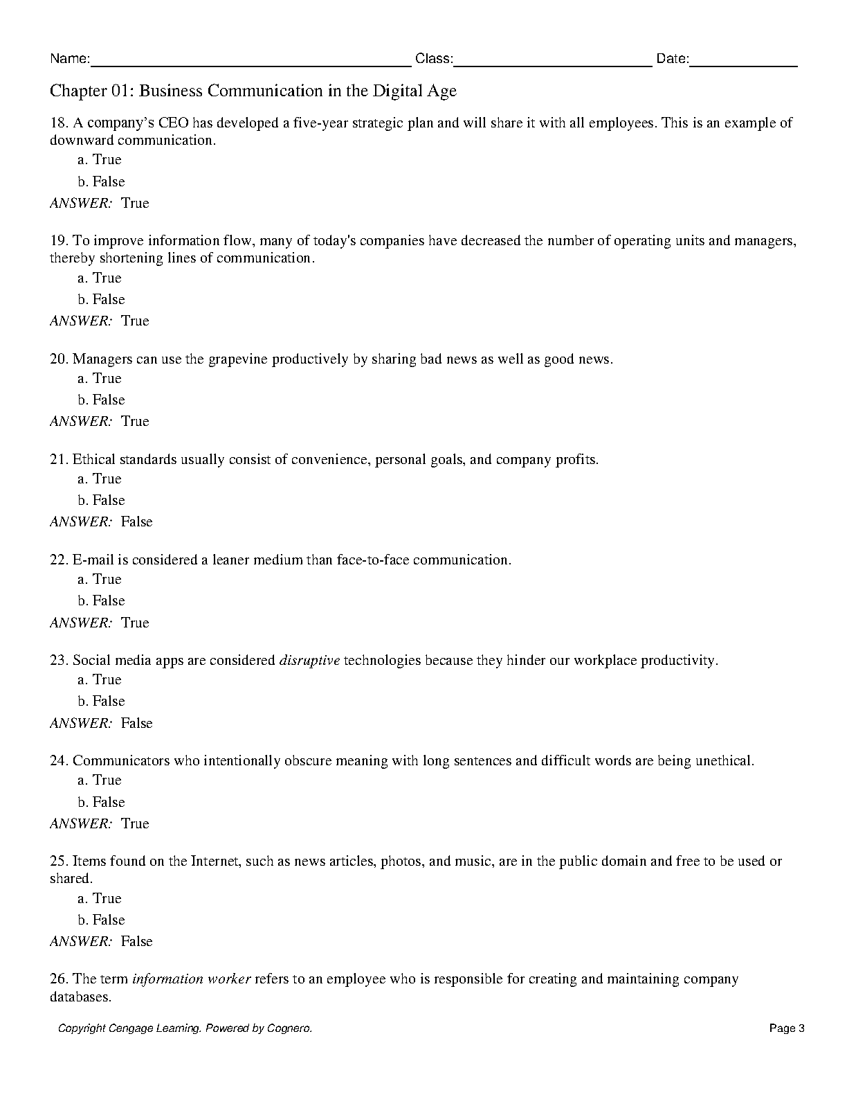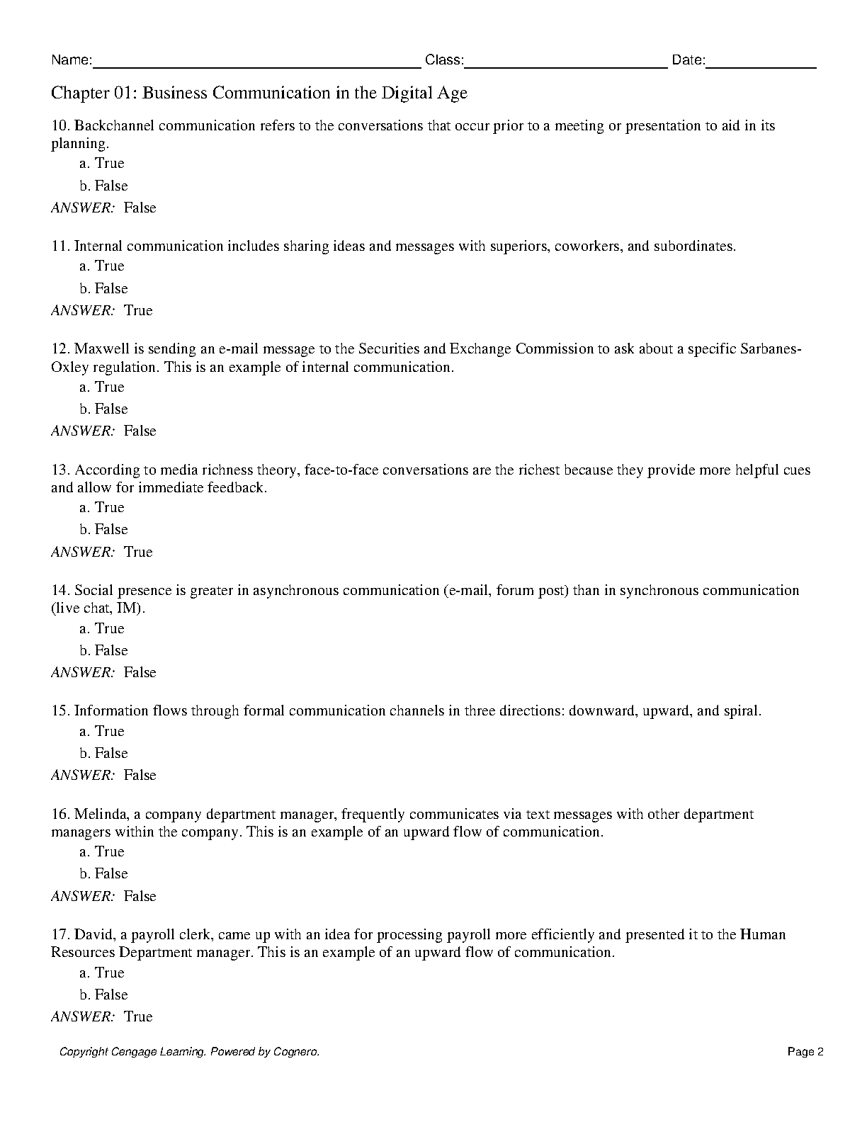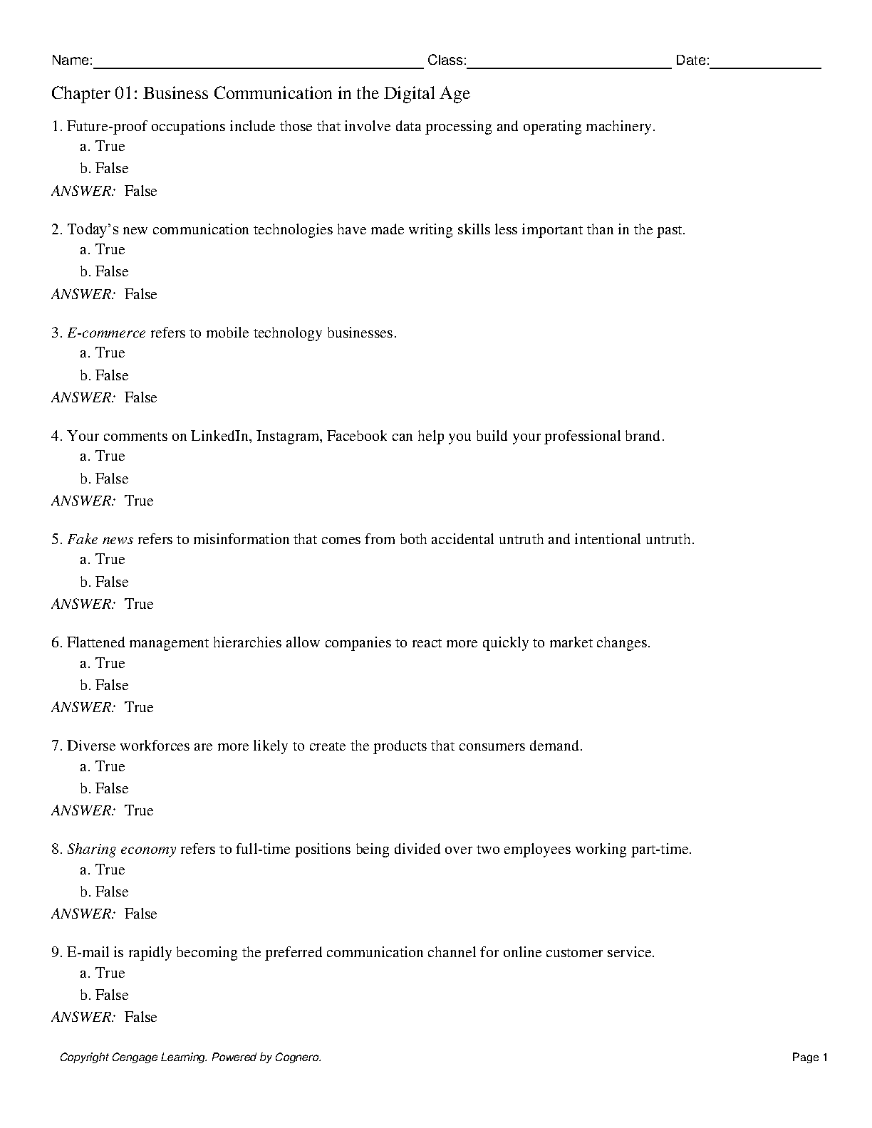 Business Communication in the Digital Age: Chapter 01 Test Bank by Cengage Learning