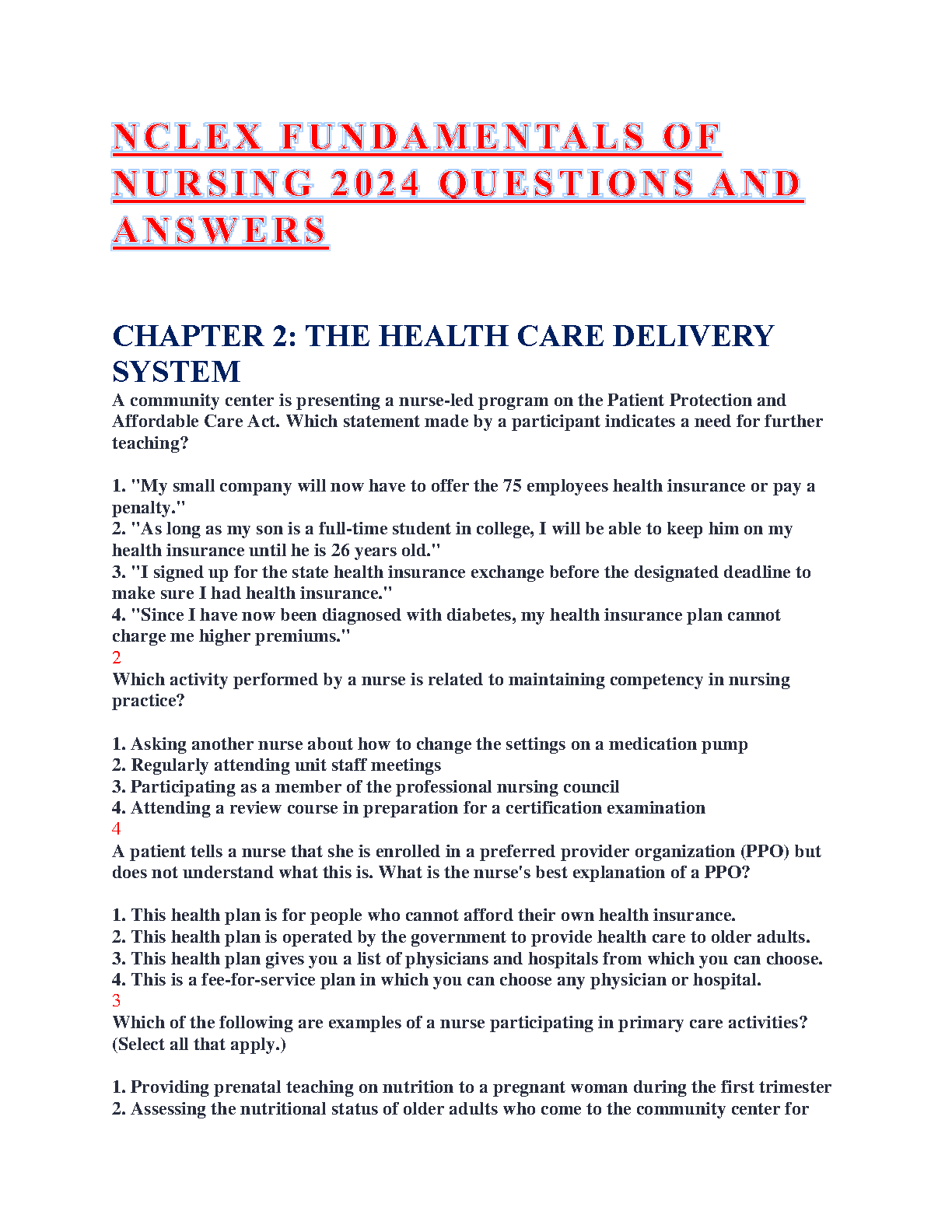 NCLEX-RN Fundamentals of Nursing 2024 Questions and Answers: A Comprehensive Guide for Exam Success