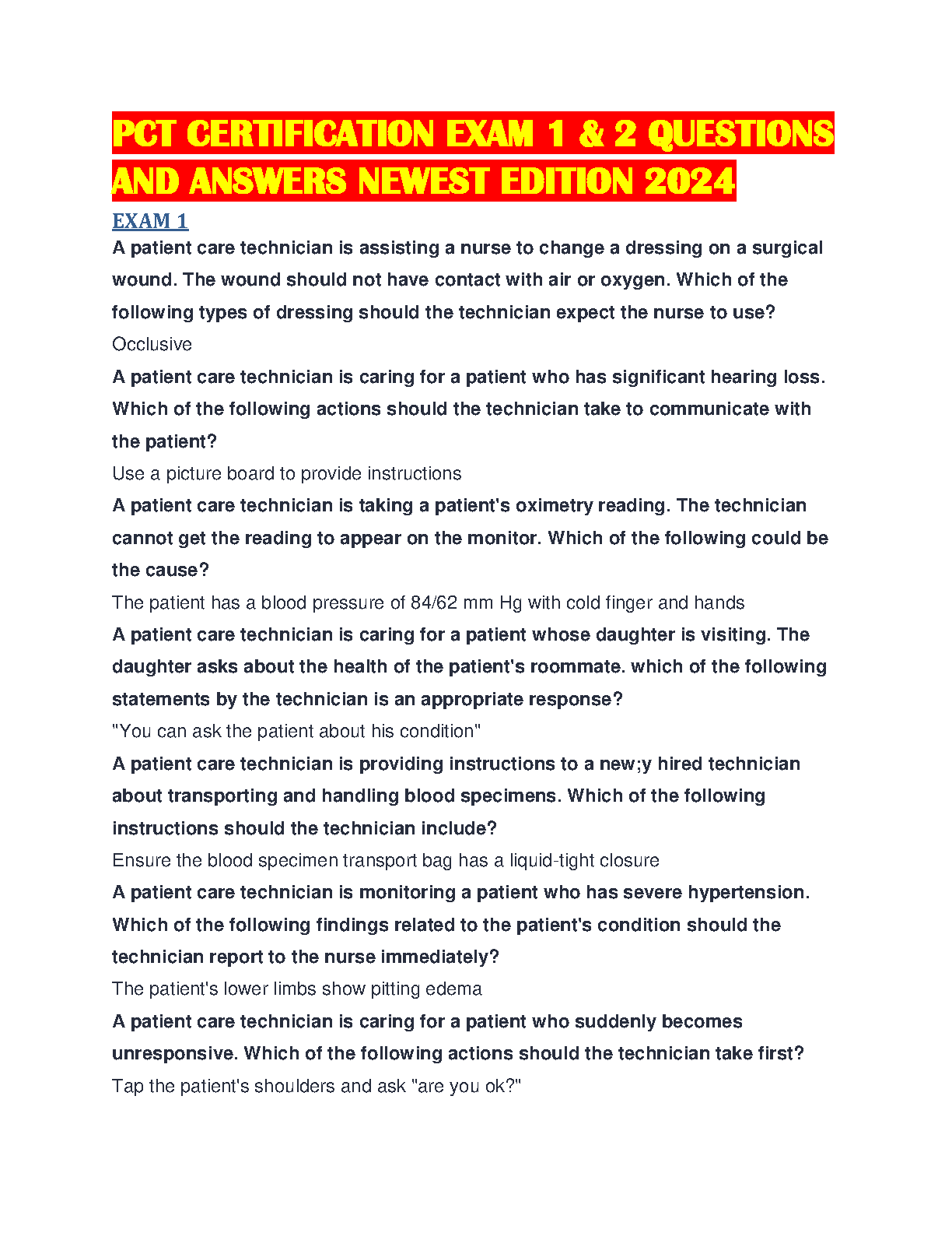 PCT Certification Exam 1 & 2 Questions and Answers: Newest Edition 2024 by Anonymous Author