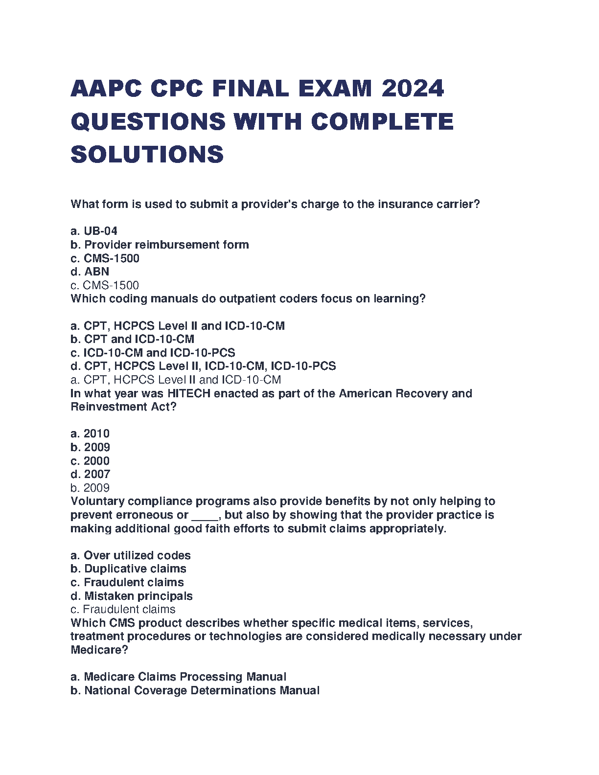 AAPC CPC Final Exam 2024 Questions with Complete Solutions by Unknown Author