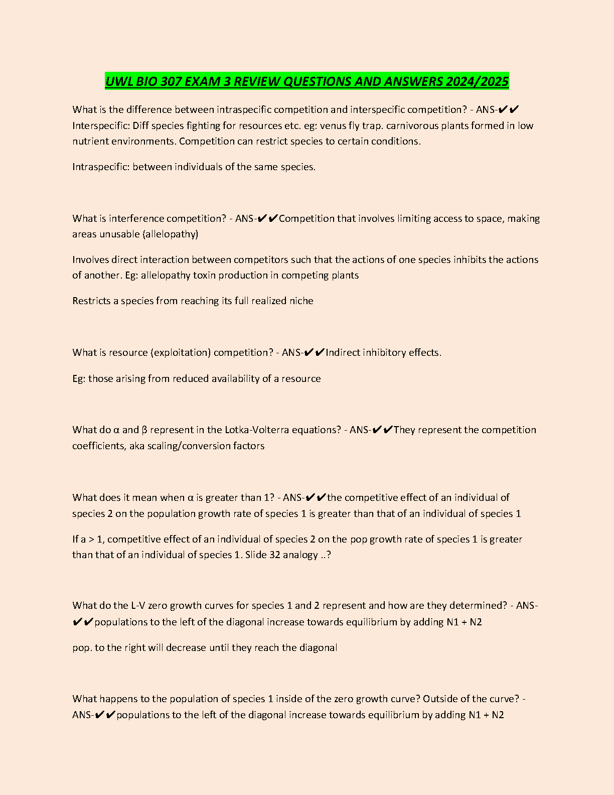 Ace your UWL BIO 307 Exam 3 with this comprehensive review guide covering intraspecific and interspecific competition, interference and resource competition, and the Lotka-Volterra equations. This resource is perfect for students aiming to pass their exams on the first attempt.