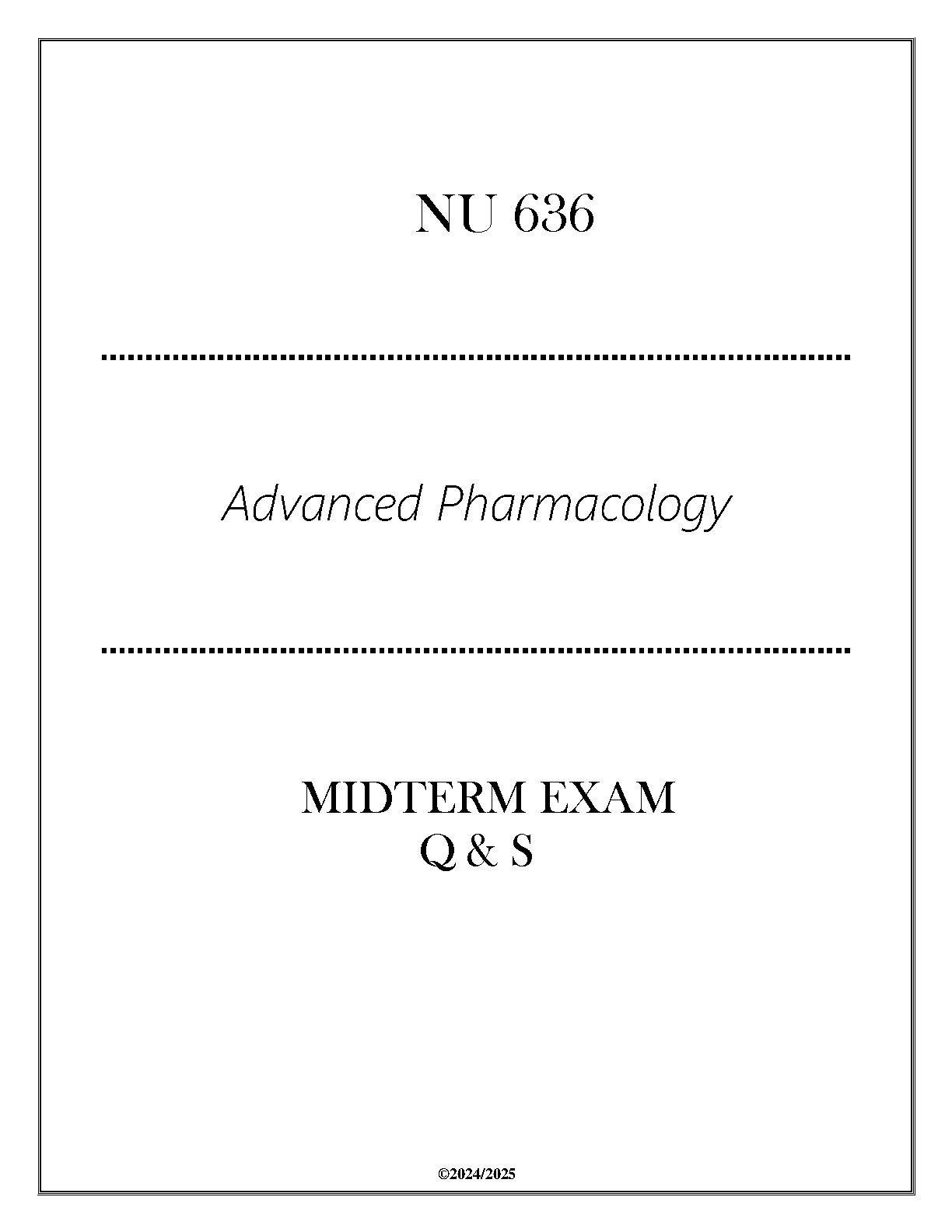 Prepare for your NU 636 Advanced Pharmacology Midterm Exam with this comprehensive Q&A resource. Designed for the 2024-2025 academic year, this study guide helps students achieve exam success and avoid resits.