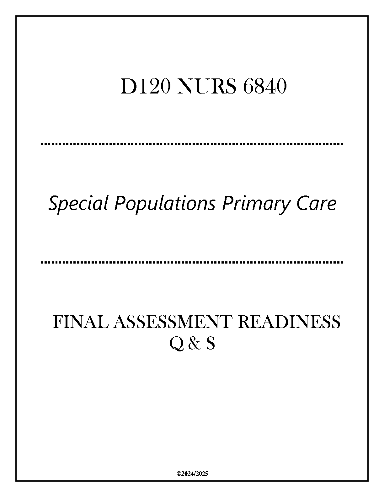 NURS 6840 Special Populations Primary Care: Final Assessment Readiness Q&A - 2024/2025 Edition