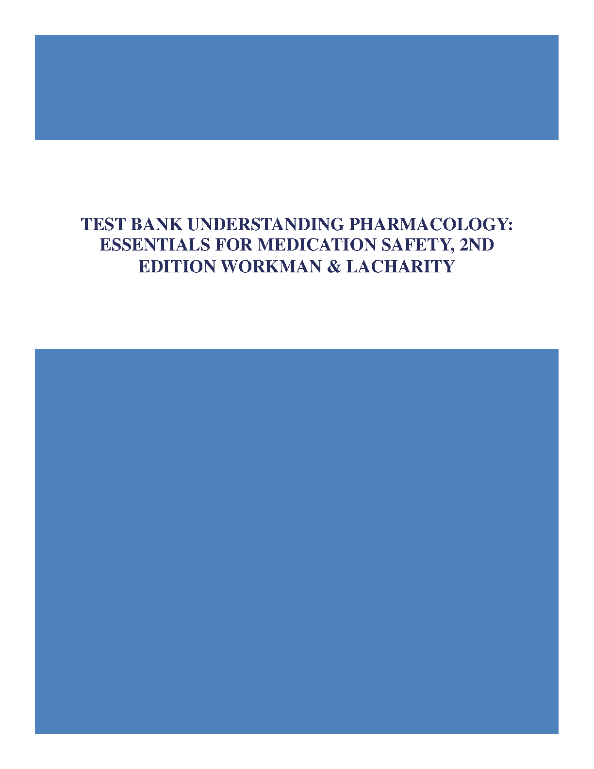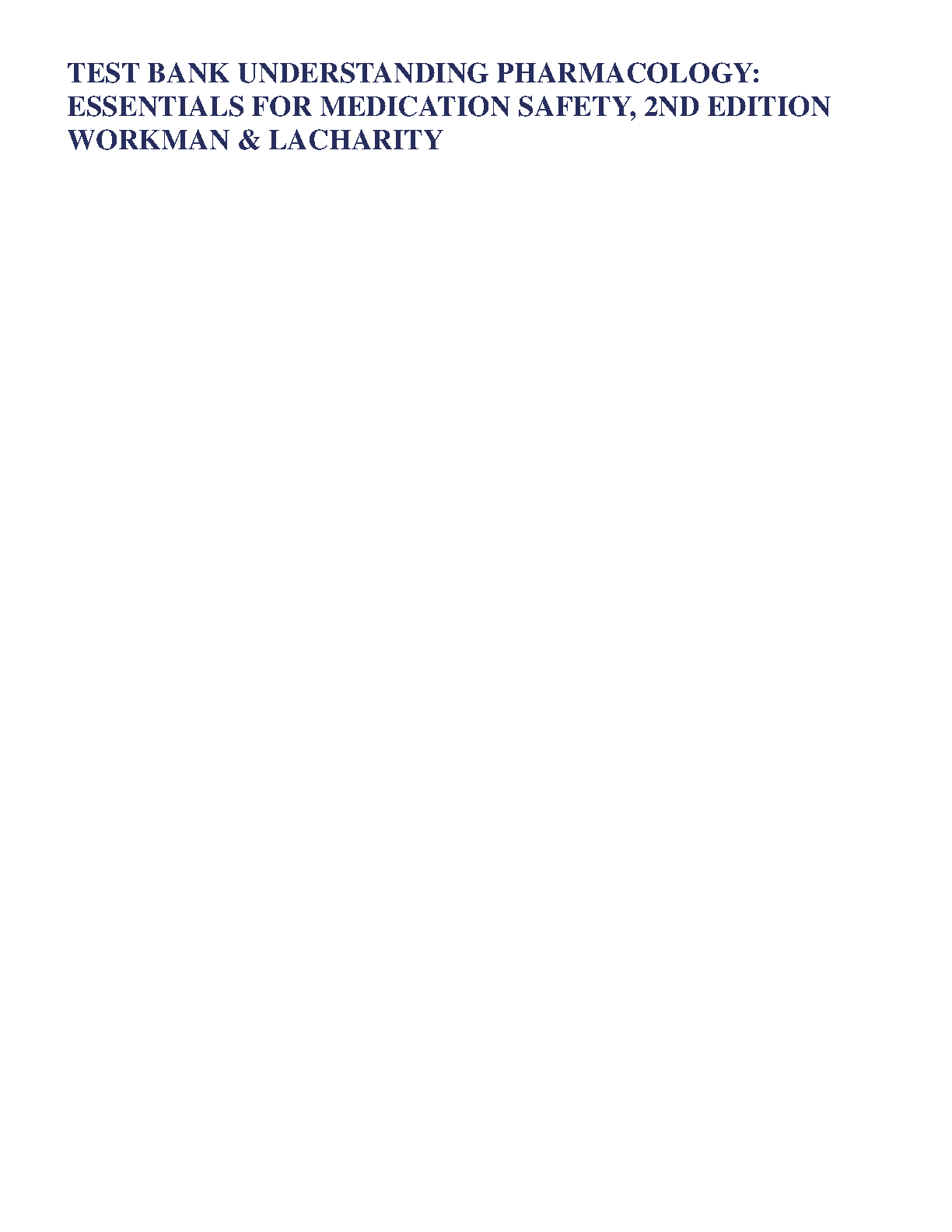 Understanding Pharmacology: Essentials for Medication Safety, 2nd Edition Test Bank by Joan Workman and Kathleen Lacharity
