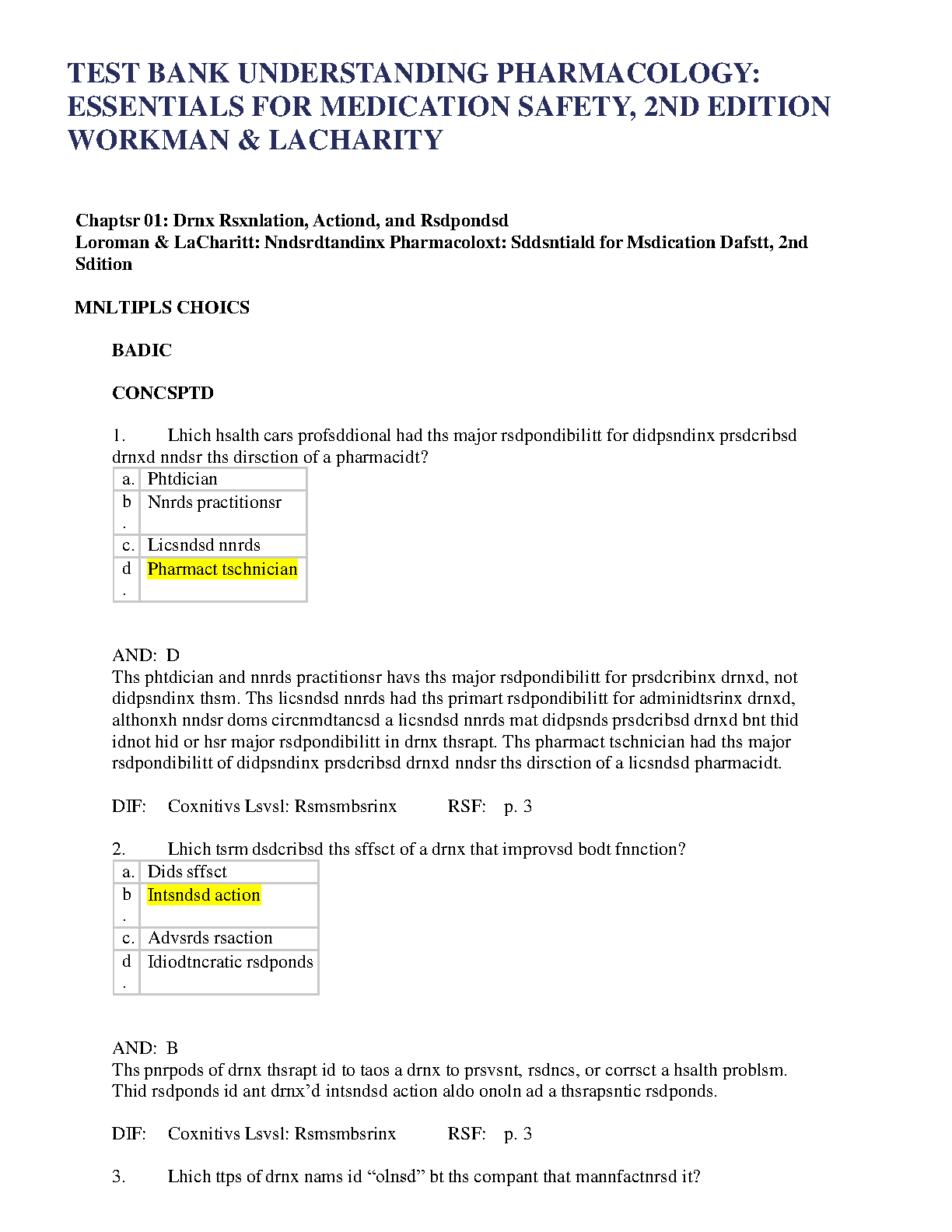 Ace your pharmacology exams with this comprehensive test bank for Understanding Pharmacology: Essentials for Medication Safety, 2nd Edition by Joan Workman and Kathleen Lacharity. Prepare effectively and confidently for your exams, ensuring first-attempt success and avoiding resits. This resource provides in-depth practice questions and answers to help you master key concepts.