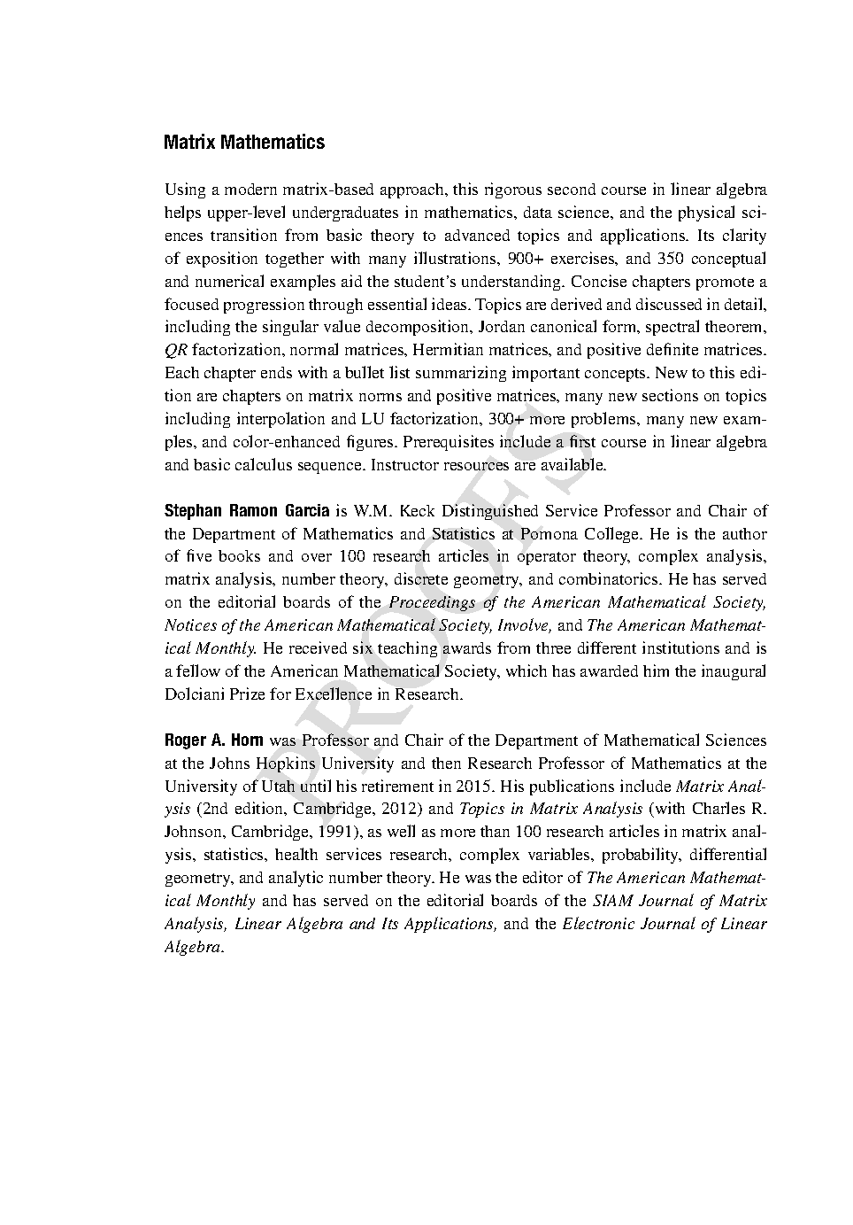 Matrix Mathematics: A Second Course in Linear Algebra, Second Edition by Stephan Ramon Garcia and Roger A. Horn