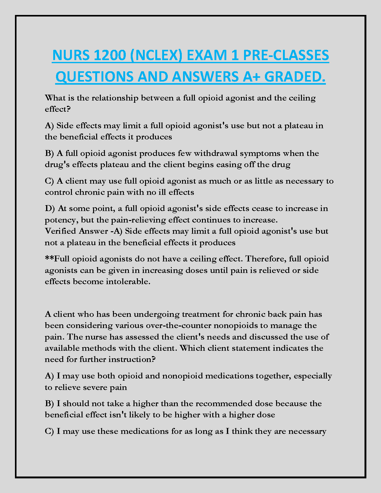NURS 1200 (NCLEX) Exam 1 Pre-Classes Questions and Answers: A+ Graded Edition by [Author Names - Not found in provided text. Requires online search for the author]