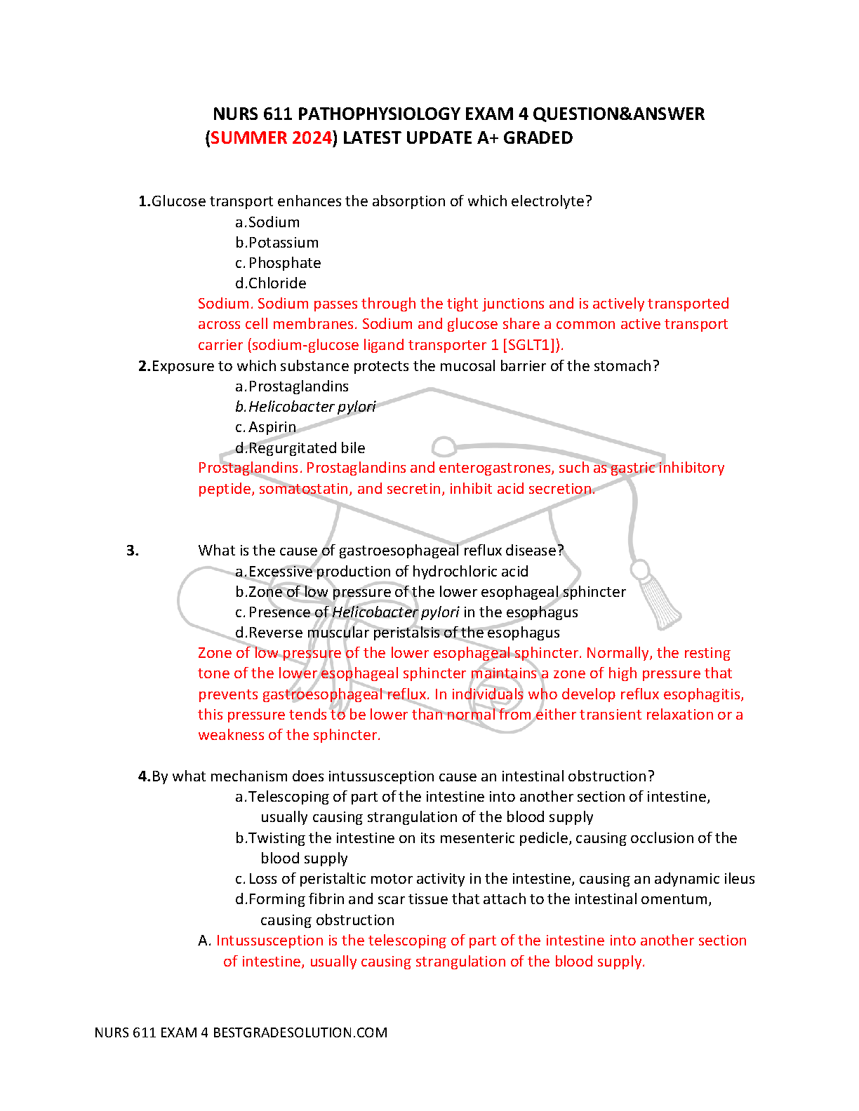 NURS 611 Pathophysiology Exam 4 Question & Answer (Summer 2024) by BestGradeSolution.com