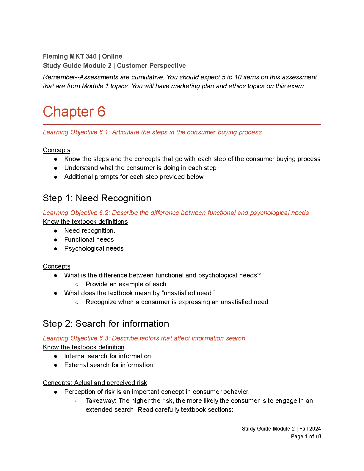 Fleming MKT 340 Study Guide Module 2: Customer Perspective for the 2024/2025 Academic Year - Ace Your Exams!