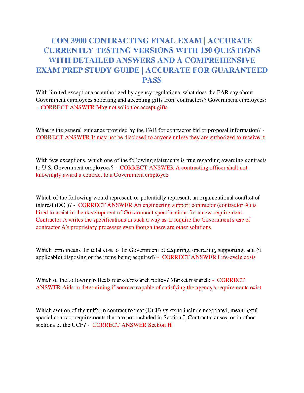 CON 3900 Contracting Final Exam Prep Guide: Accurate Answers for Guaranteed Pass (2024/2025 Edition)