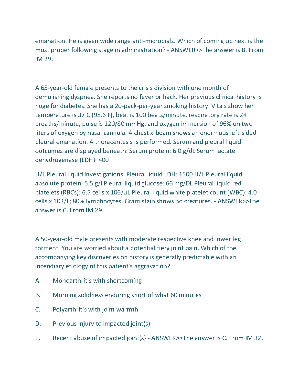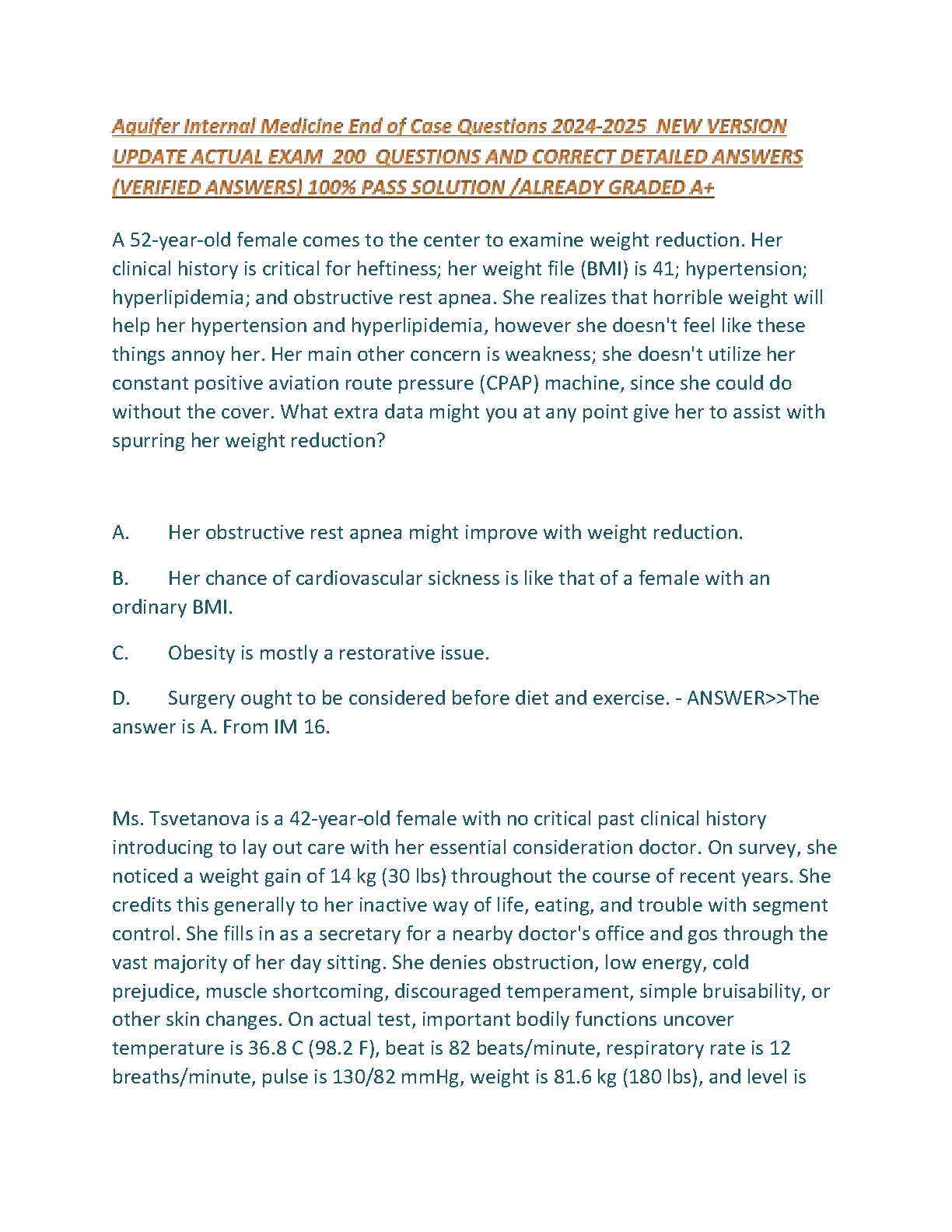Verified answers to help you pass the Aquifer Internal Medicine End of Case Questions exam on your first attempt. This updated 2024-2025 version includes 200 detailed questions and answers, ensuring comprehensive exam preparation. Avoid resits with this complete solution guide.