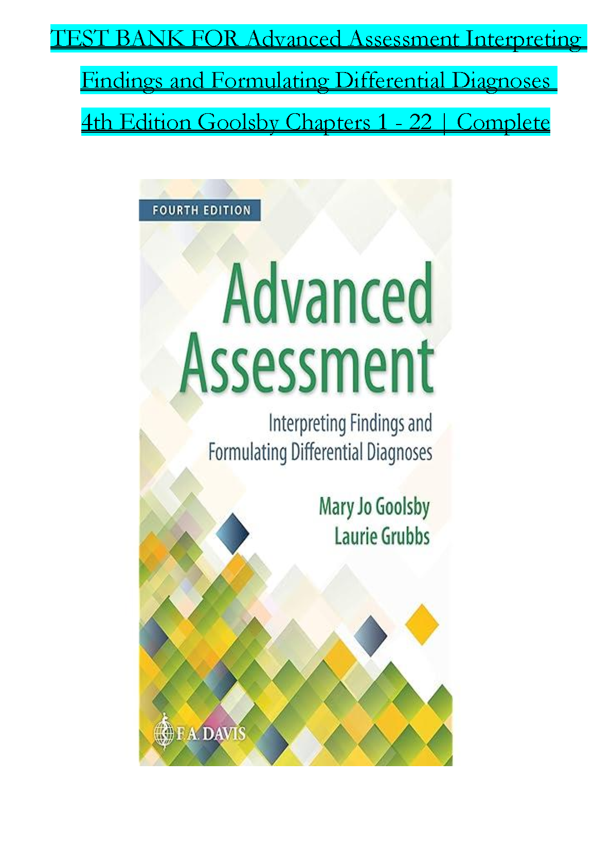 Advanced Assessment: Interpreting Findings and Formulating Differential Diagnoses, 4th Edition Test Bank by Mary Jo Goolsby and Laurie Grubbs