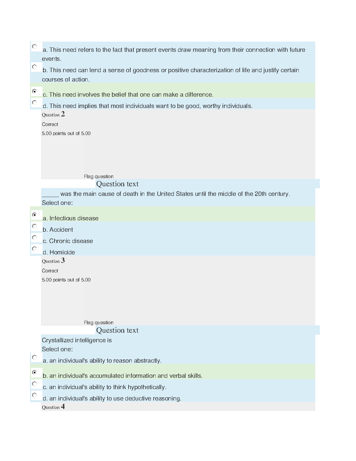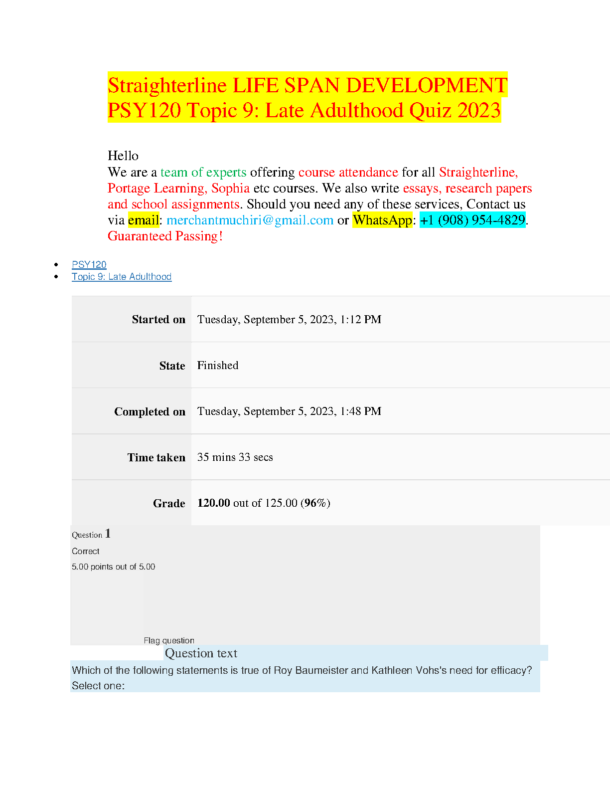 Straighterline PSY120 Life Span Development Quiz 2023: Late Adulthood Edition by Roy Baumeister and Kathleen Vohs