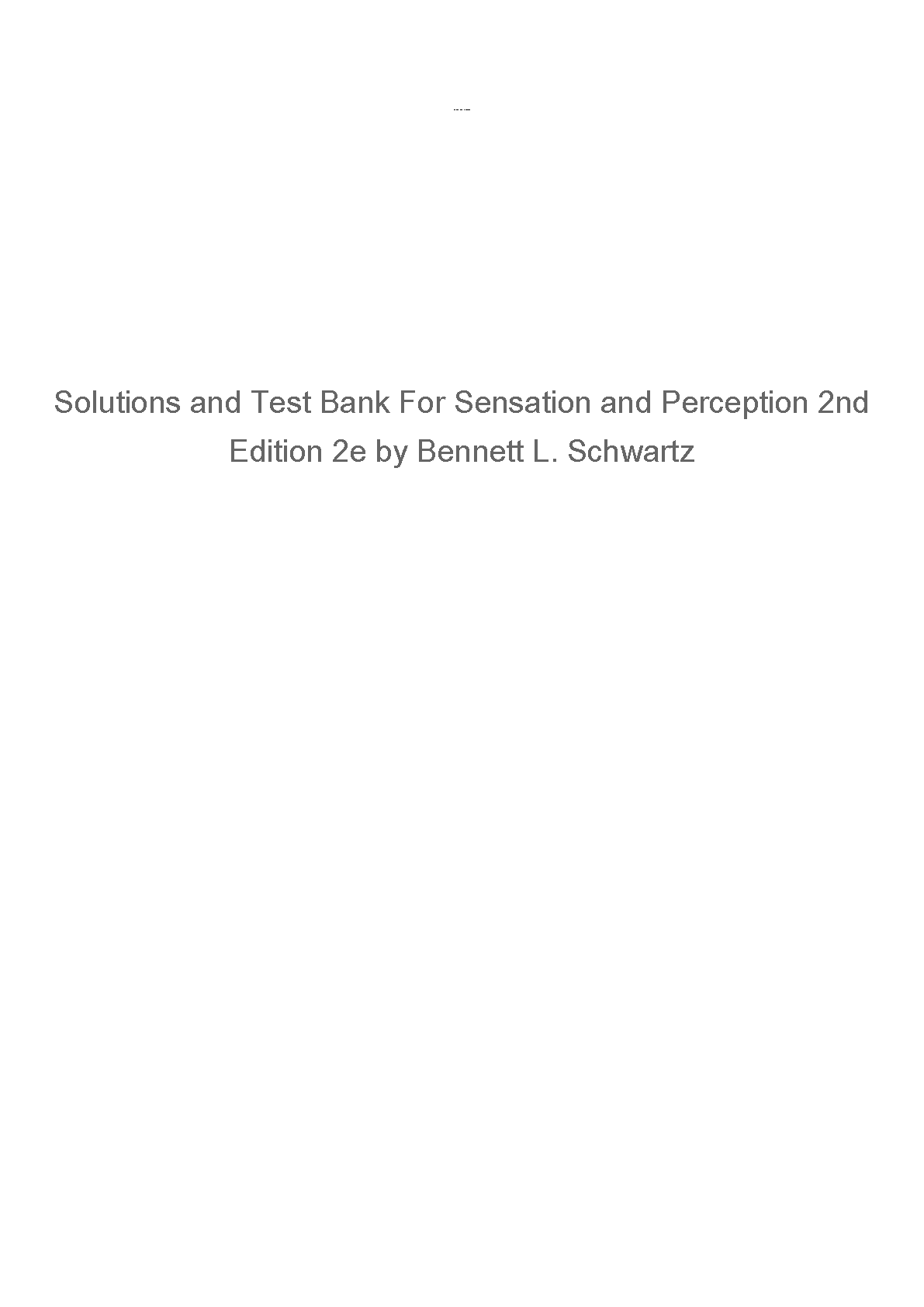 Ace your Sensation and Perception exams with this comprehensive test bank and solutions manual for the 2nd edition by Bennett L. Schwartz. Prepare effectively and avoid resits with this essential resource designed to help you succeed on your first attempt.