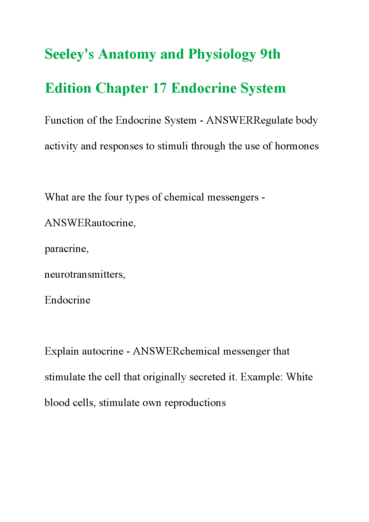 Ace your Anatomy and Physiology exams with this concise guide covering Chapter 17: The Endocrine System from Seeley's Anatomy and Physiology, 9th Edition. Master key concepts and exam questions with ease. Avoid resits and pass on your first attempt.