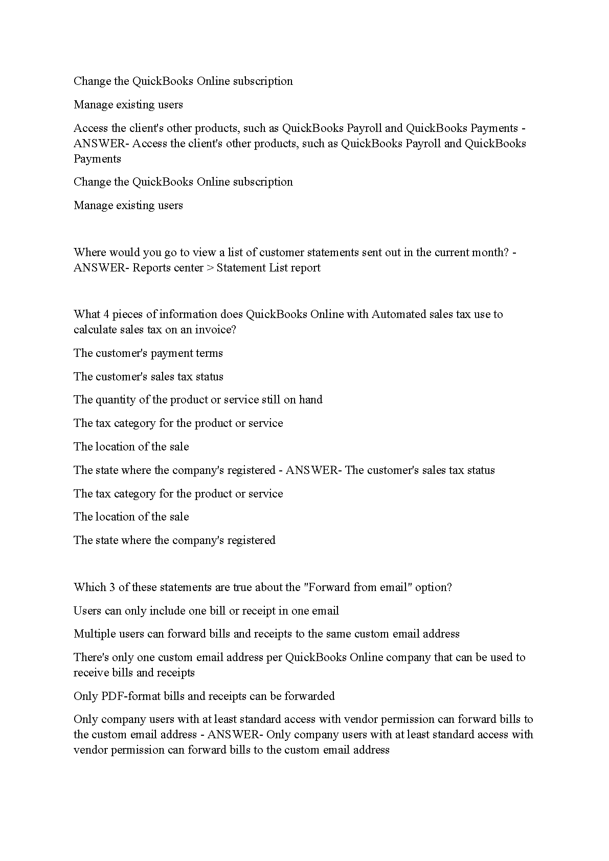 QBO Certification Prep with Questions and Answers 2024 New Update by Intuit