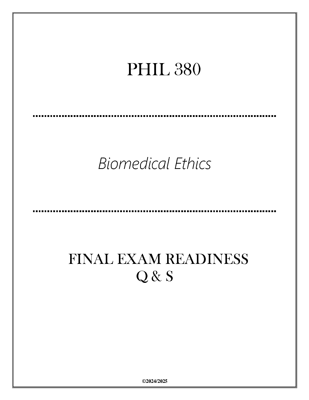 PHIL 380 Biomedical Ethics Final Exam Readiness Q&A 2024-2025 Edition - Ace Your Exam on the First Attempt!