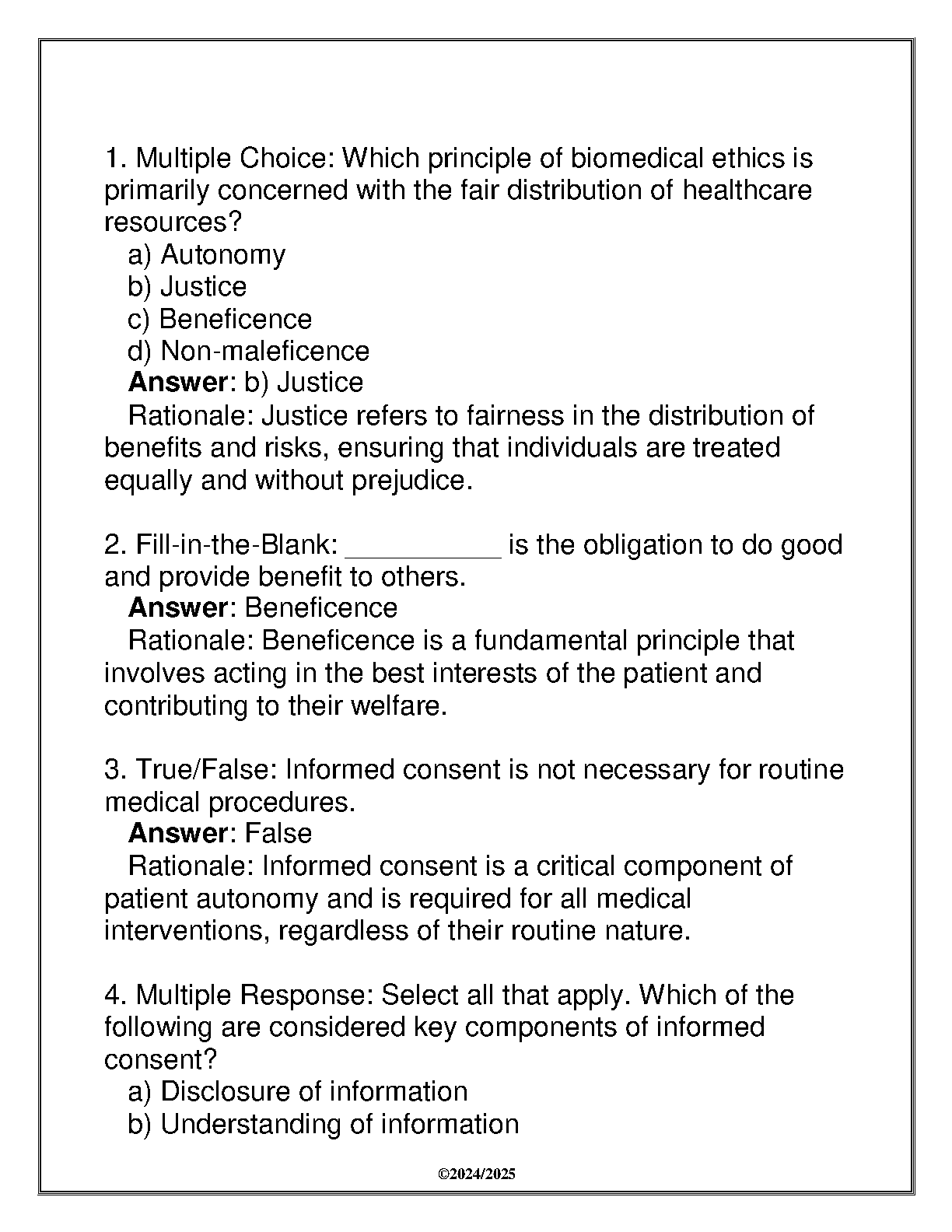 Conquer your PHIL 380 Biomedical Ethics final exam with this comprehensive question and answer resource. Designed for the 2024-2025 academic year, this guide provides focused practice for exam success. Master key concepts, improve your understanding, and boost confidence. Avoid resits and achieve your academic goals.