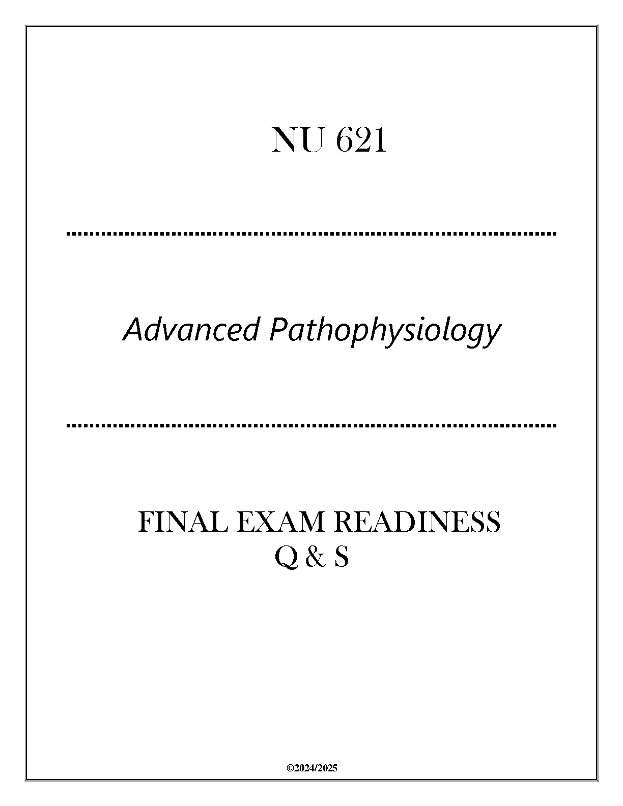NU 621 Advanced Pathophysiology Final Exam Readiness Q&A 2024-2025 Edition
