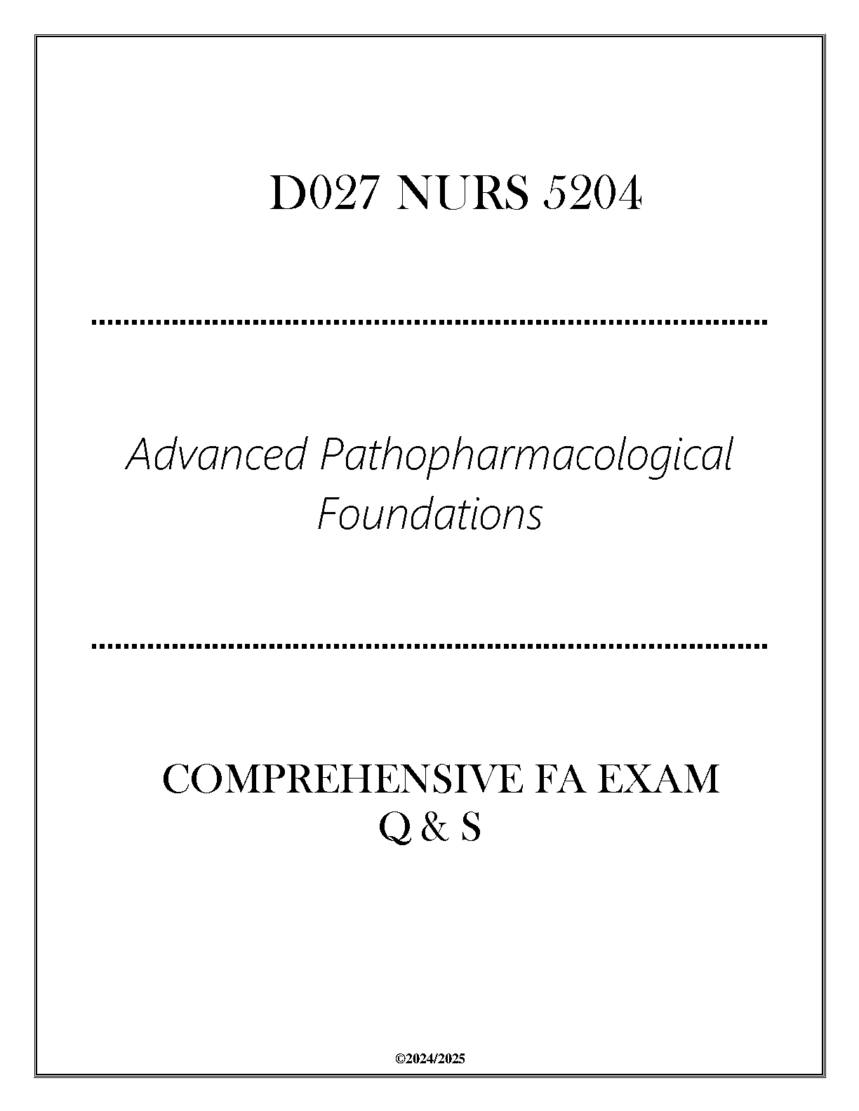 NURS 5204 Advanced Pathopharmacological Foundations Comprehensive FA Exam Q&A 2024-2025 Edition