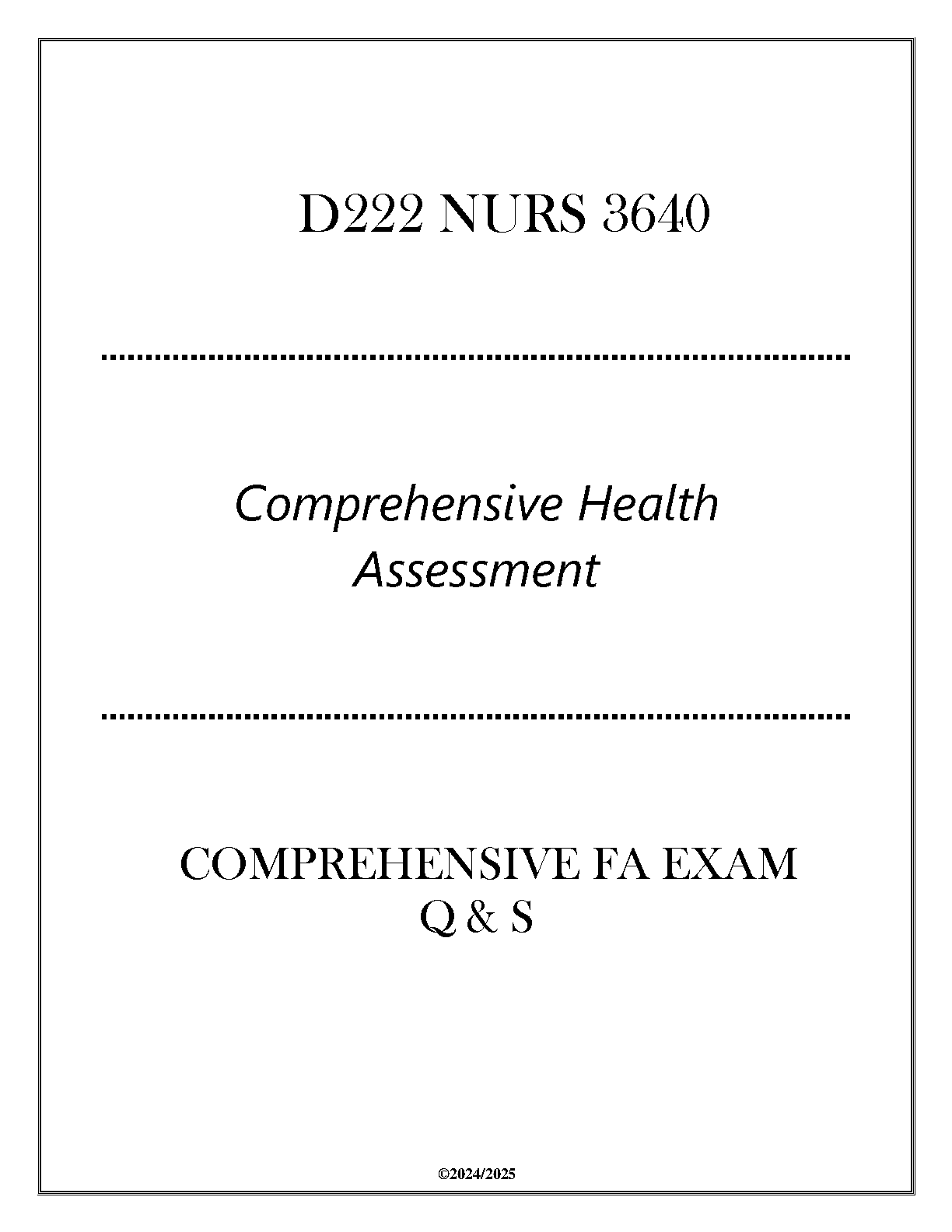 D222 NURS 3640 Comprehensive Health Assessment Exam Q&A 2024-2025 Edition: Ace Your Exams on the First Attempt