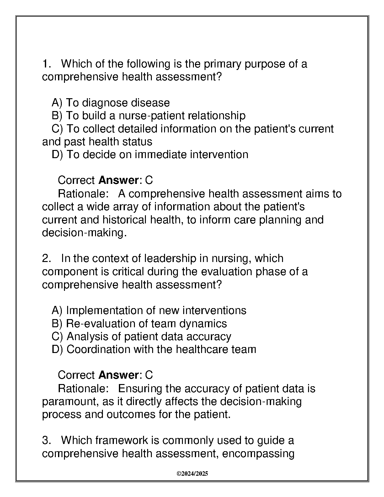 This comprehensive Q&A resource for D222 NURS 3640: Comprehensive Health Assessment is designed to help students master the course material and pass their exams with confidence. It covers all key topics for the 2024-2025 academic year and is perfect for first-time exam takers.