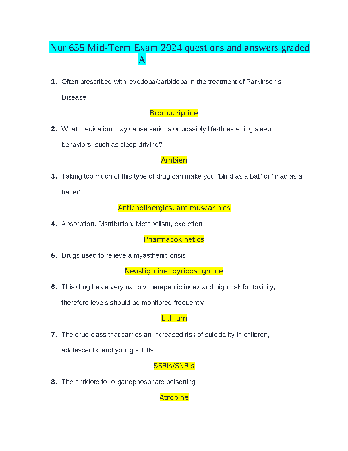 Ace your Nur 635 Midterm Exam with this comprehensive guide featuring questions and answers for the 2024 academic year. Prepare effectively and avoid resits.